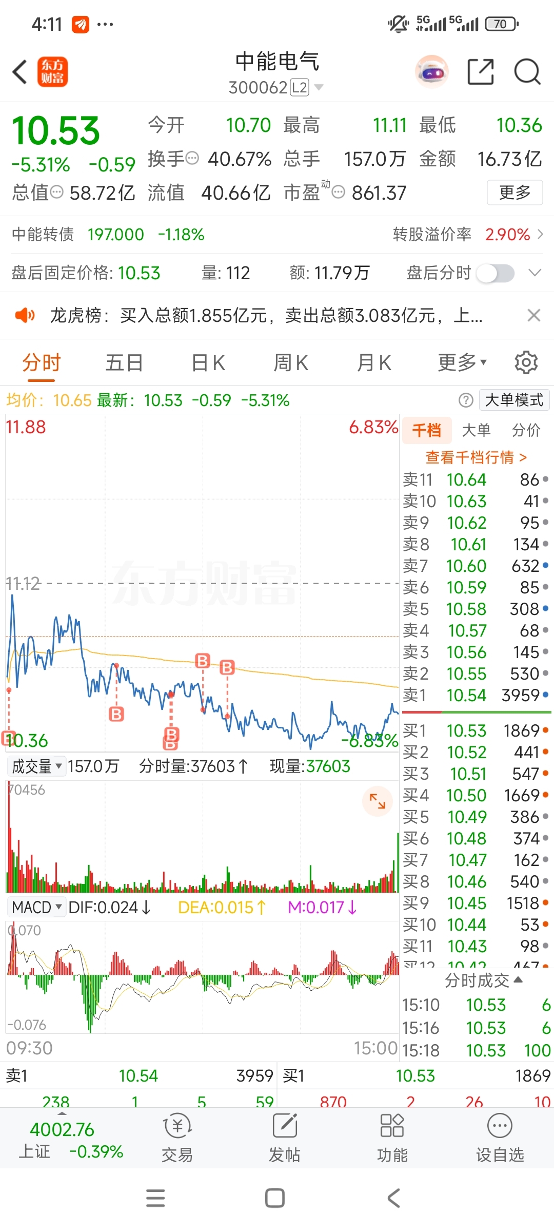 中能电气这个股票还没有结束。今天已经开始进场了。下面跌幅的空间不大。再跌还继续补