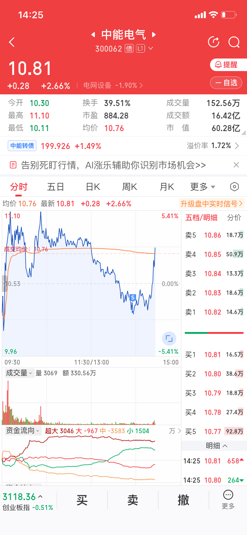$中能电气(SZ300062)$ 割在最低点 C