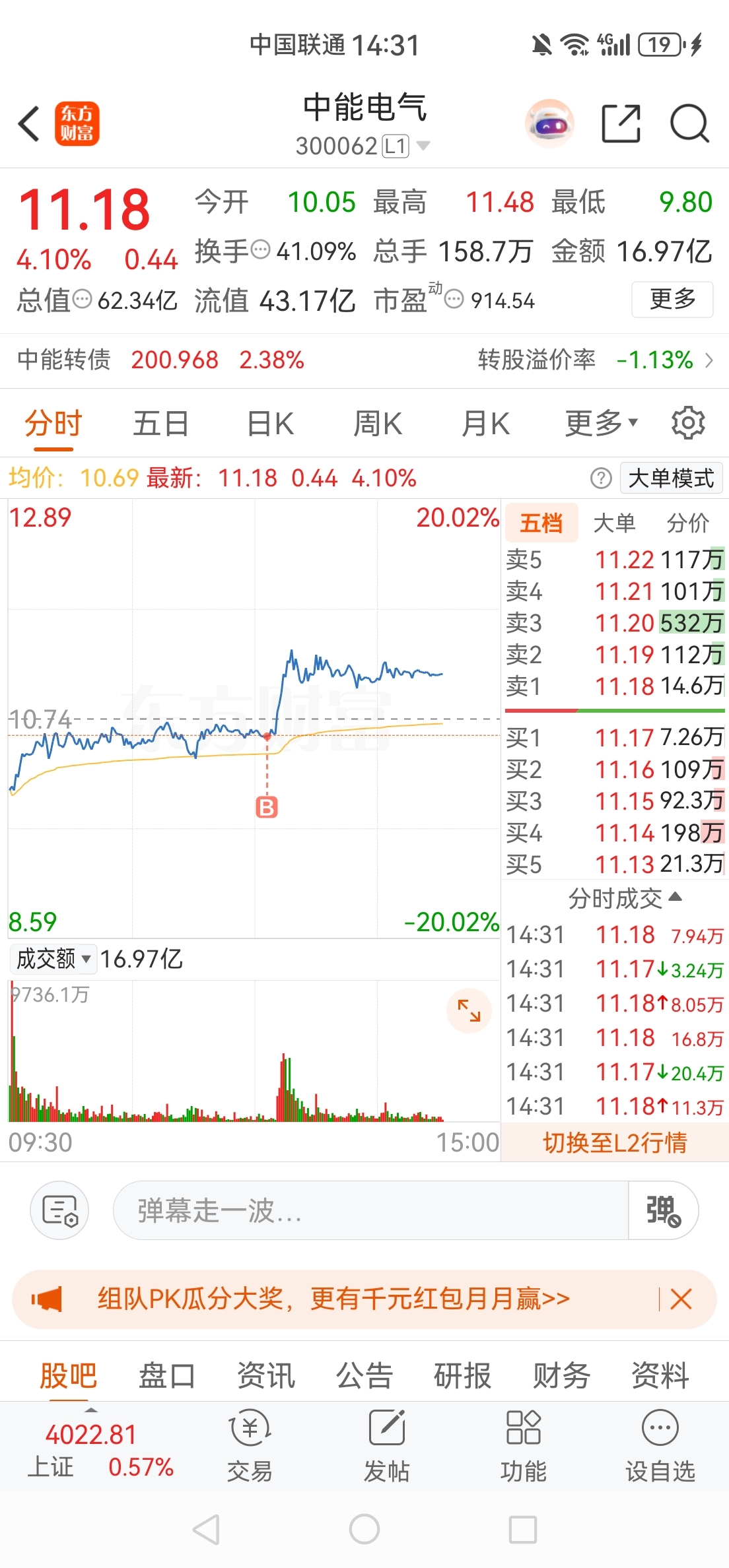 $中能电气(SZ300062)$ 因为有转债 再好的板块联动效果也涨不起来 , 腊肉一条 。明天竞价卖出