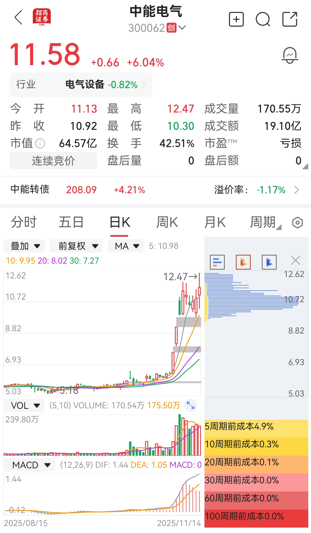 $中能电气(SZ300062)$ 筹码结构好,换手充分,最近这种风格票都是