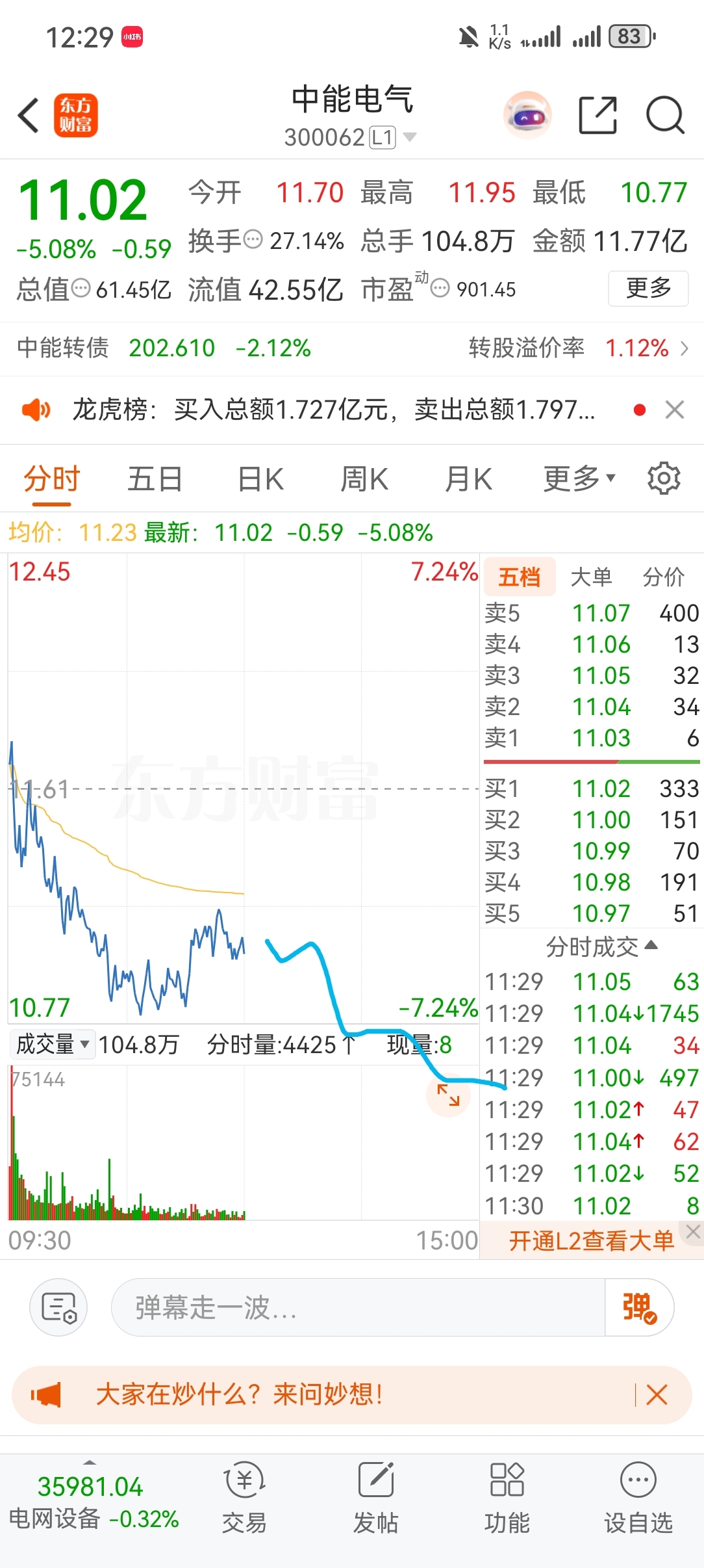 $中能电气(SZ300062)$ 下午走势不用多说,自己看图。今天买进的自己乖乖躺平,明天早点割肉。老实点