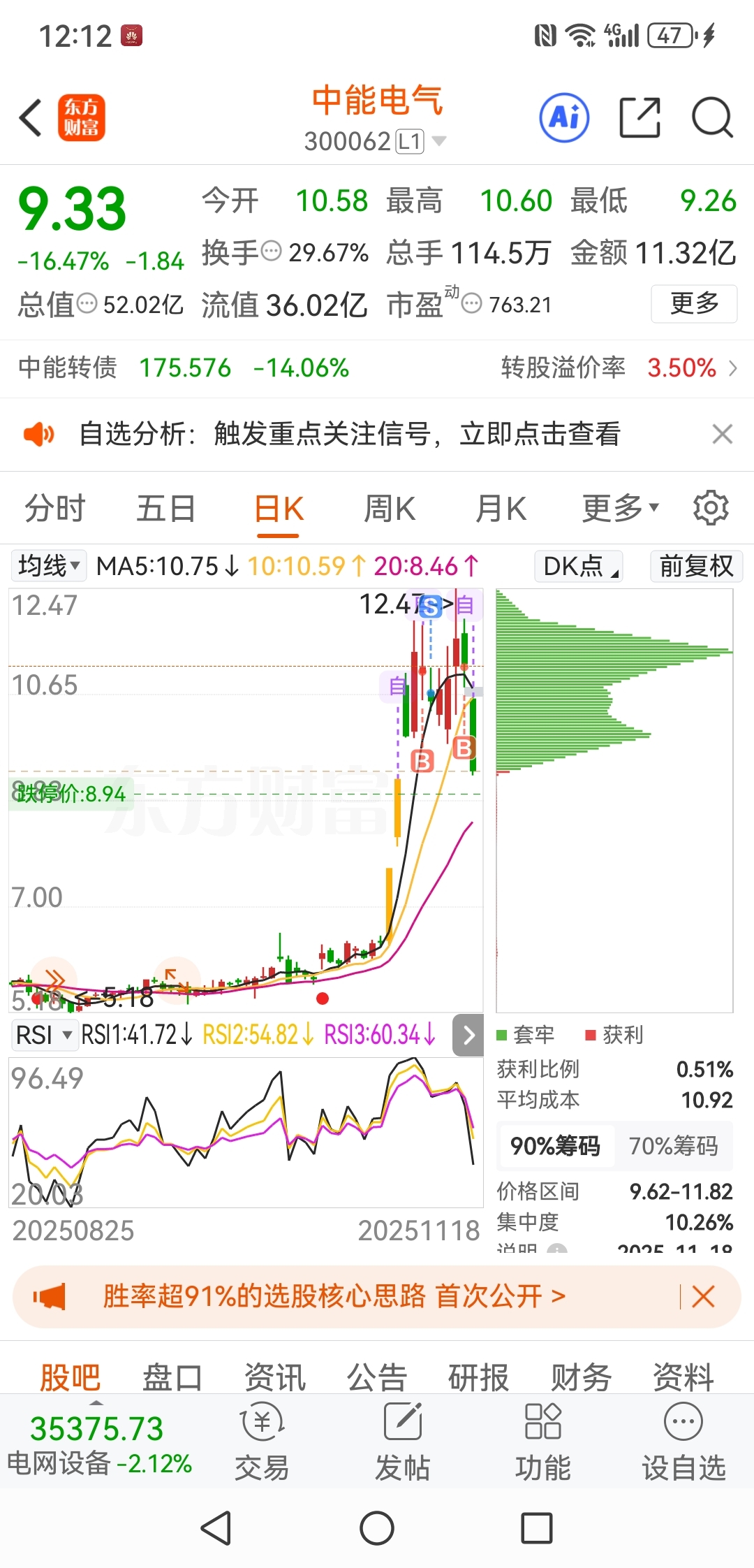 $中能电气(SZ300062)$ 昨天11.40买的50手,割还是不割,请股吧里的老师指导一下,谢谢!