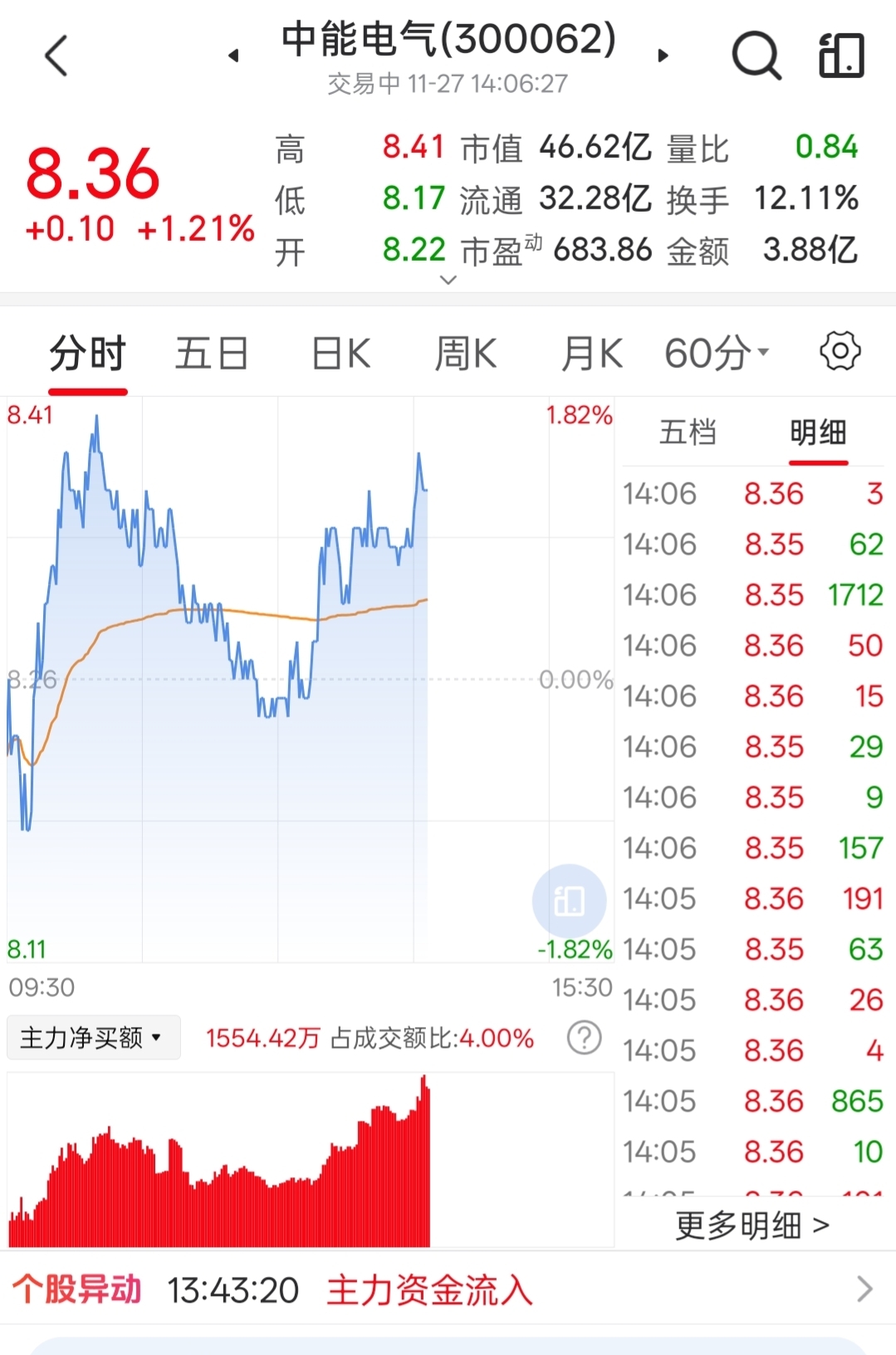 $中能电气(SZ300062)$ 不要再割肉了,主力有回来迹象