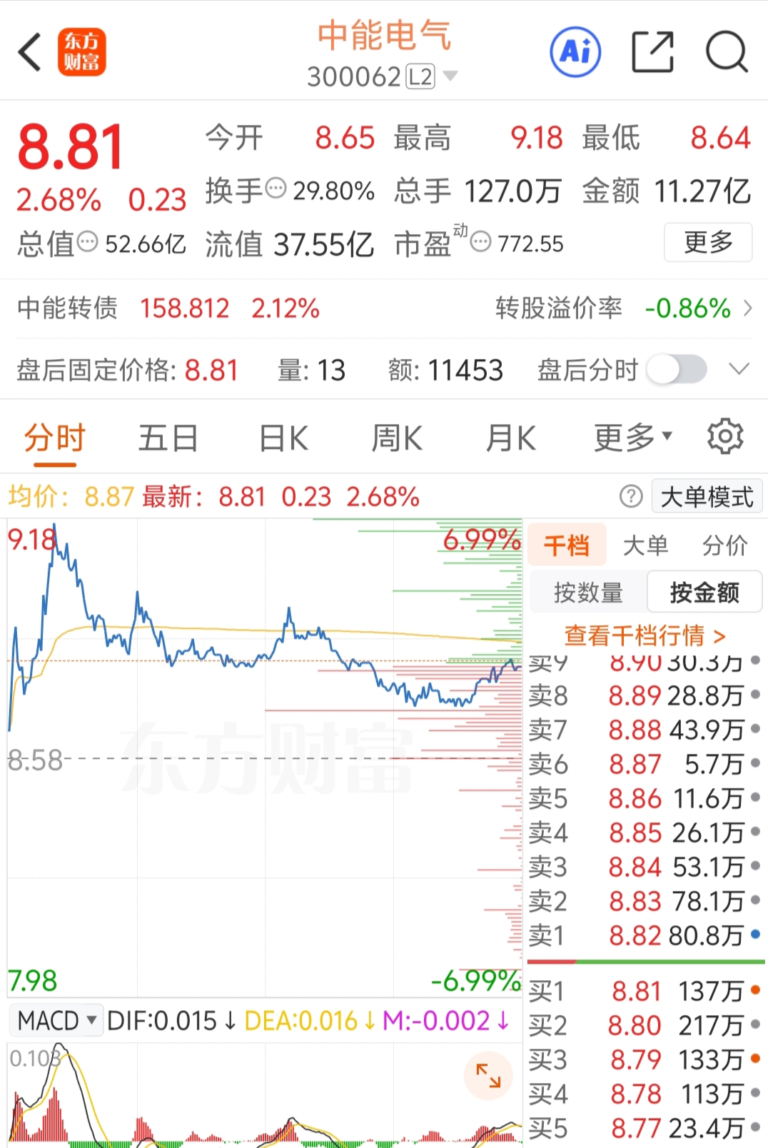 $中能电气(SZ300062)$ 低位换手这么大,两次没跌破8.13,买点看看。