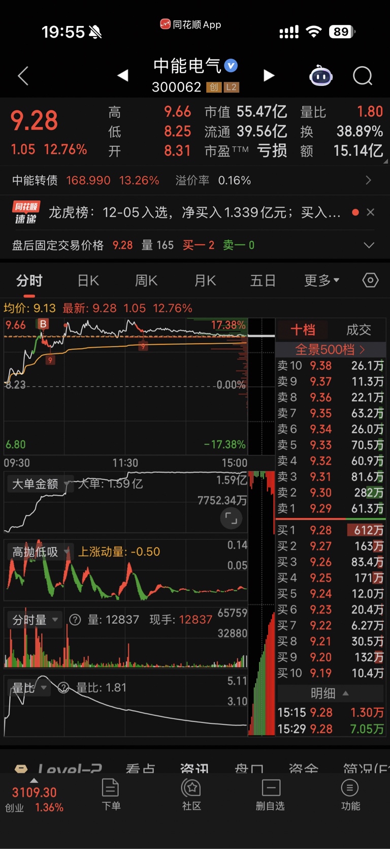 $中能电气(SZ300062)$ 说真的,我是纯运气,这票我添加了一个月了,一直等待最低点,我看昨天的预期行程今天可能很多个股底部的都会反弹,就赶紧买个票上个车,本来预期看能不能有个 20-30cm 的反弹就跑,结果给那么大惊喜,真的很给力!