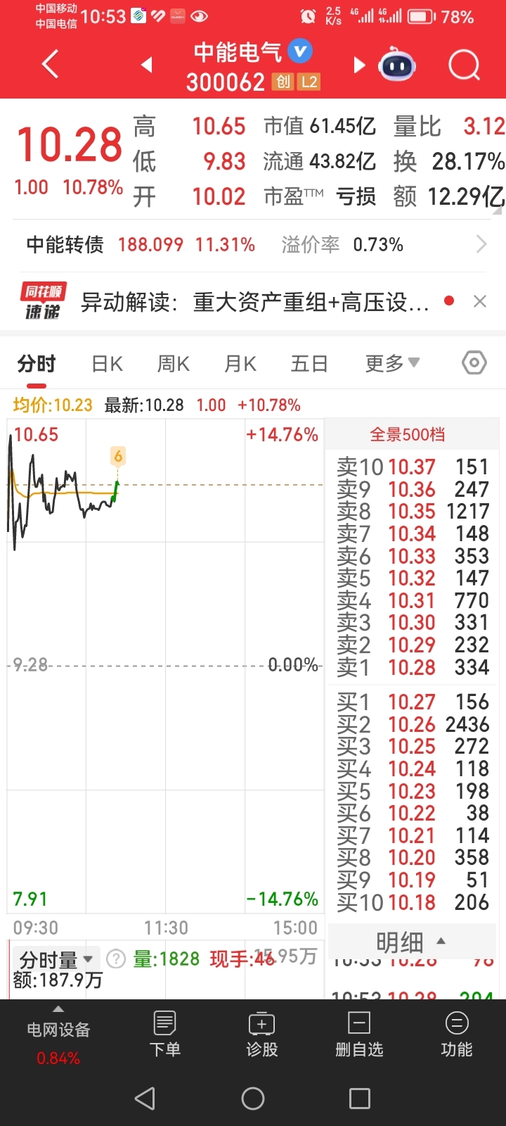 $中能电气(SZ300062)$ $中能电气(300062)$ 当心今天洗获利盘,收盘后重组停牌。