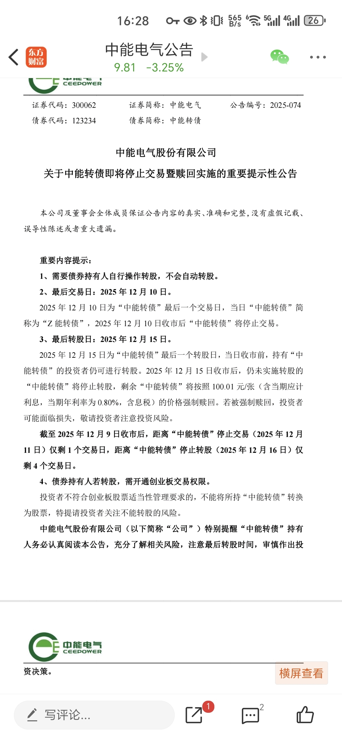 $中能电气(SZ300062)$ 利好还是利空