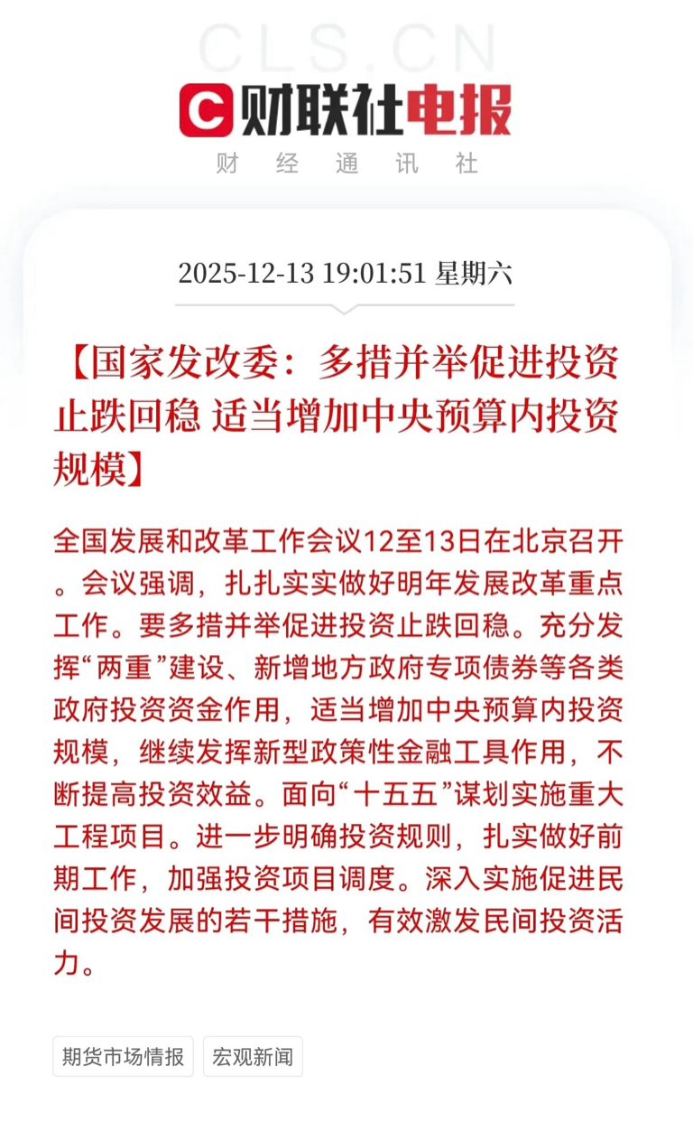 简单说,国家要多管齐下稳投资,钱袋子要松一松了,中央预算投资要加量,地方政府专项债和政策性金融工具也会发力,还专门提到要“面向‘十五五’谋划重大项目”,这信号够明确了吧?