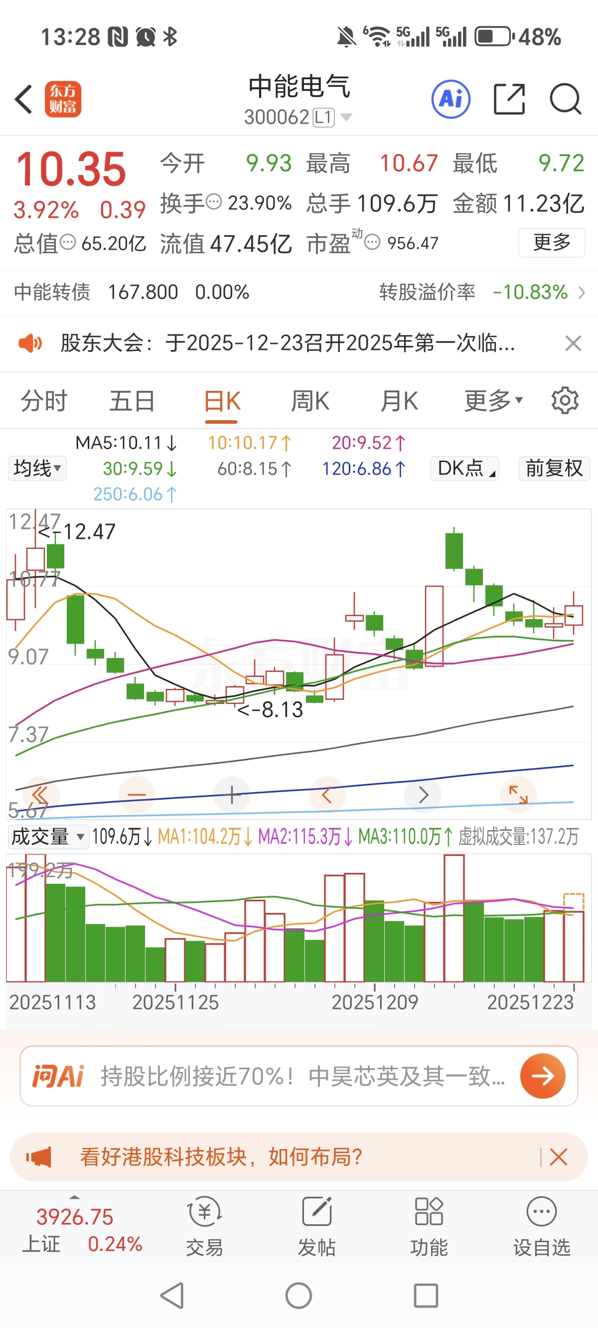 $中能电气(SZ300062)$ 5日线和10日线相交不涨都难