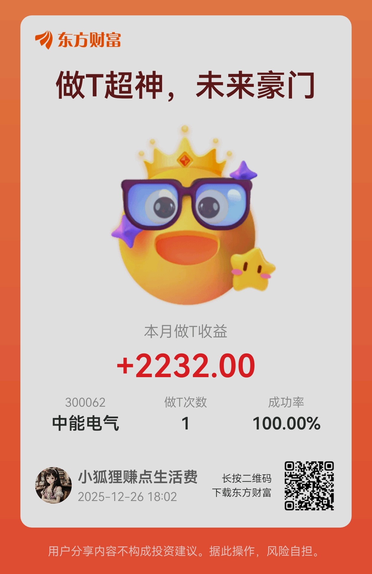 温馨提示: 1.根据《证券法》规定,禁止编造、传播虚假信息或者误导性信息,扰乱证券市场;2.用户在本社区发表的所有资料、言论等仅代表个人观点,与本网站立场无关,不对您构成任何投资建议。用户应基于自己的独立判断,自行决定证券投资并承担相应风险。《东方财富社区管理规定》