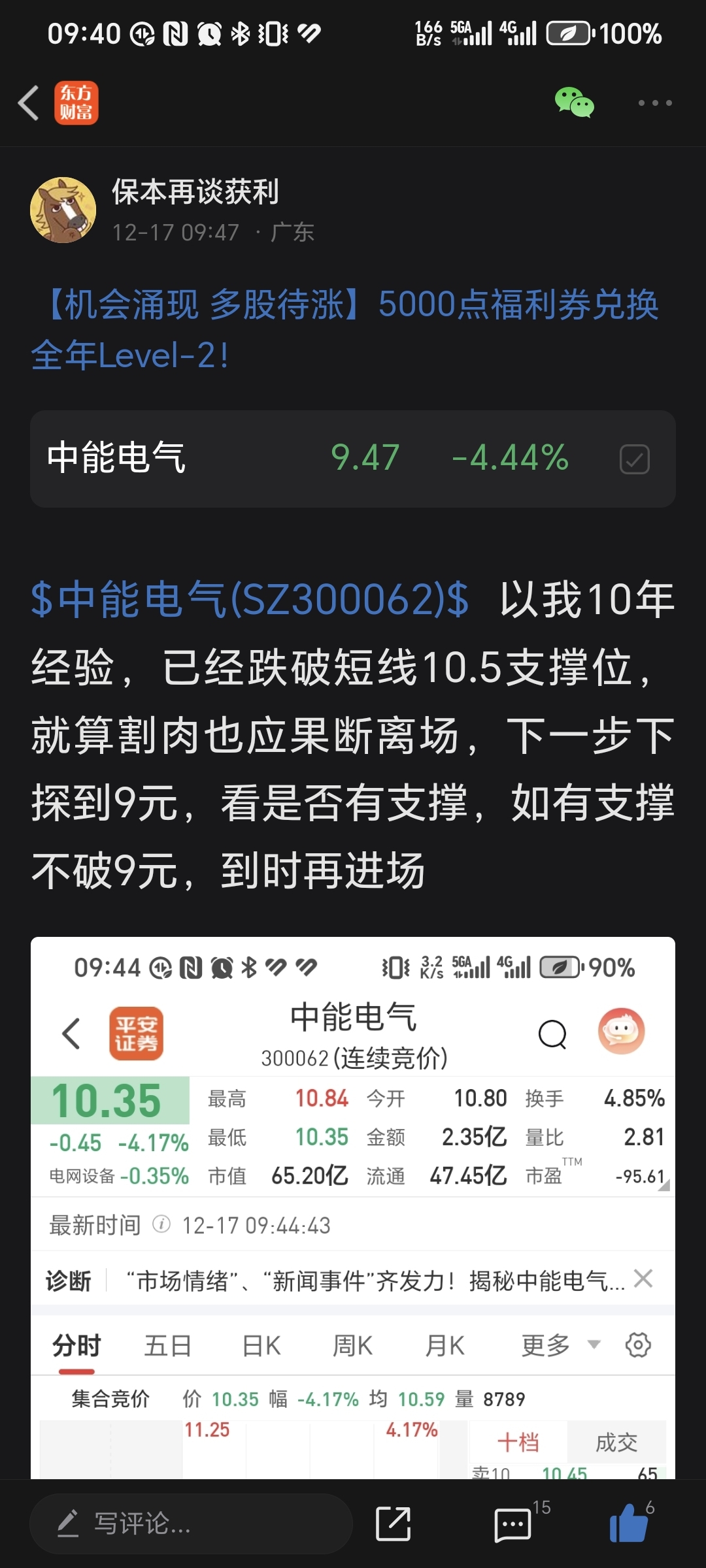 $中能电气(SZ300062)$ 我说下探到9元看是否有支撑,12月17号说的,好多人还喷我,不知道你们在喷什么,现在回头去看看是不是这样的?