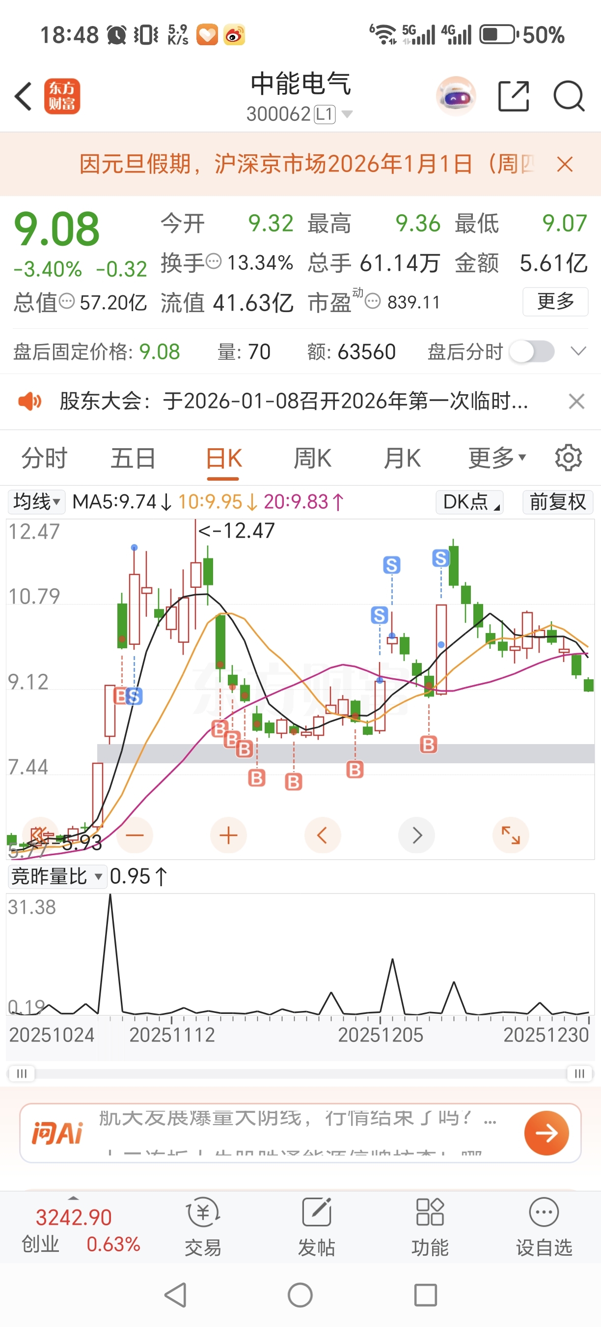 $中能电气(SZ300062)$ 差一点到我买入的价格,还好没有买
