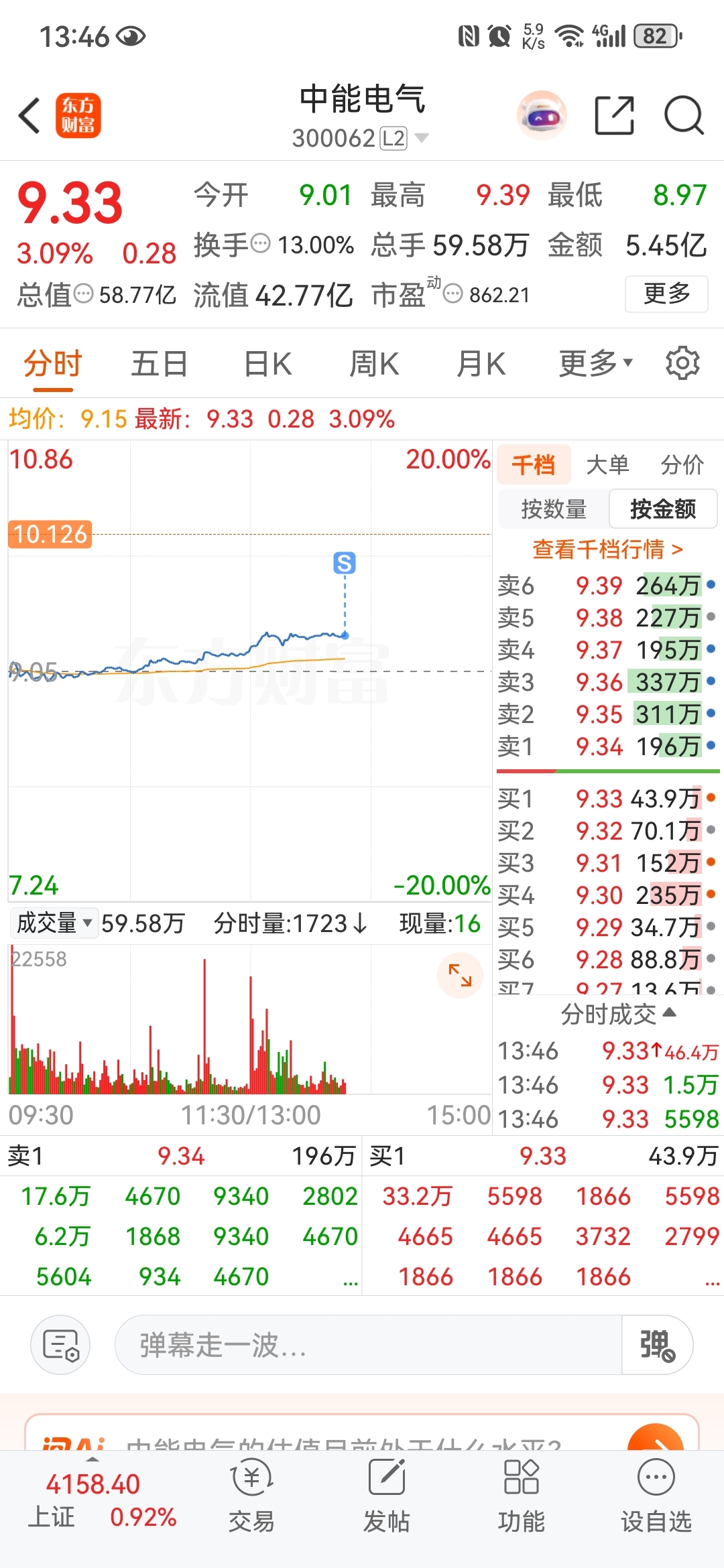 $中能电气(SZ300062)$ 走了,老板可以拉了