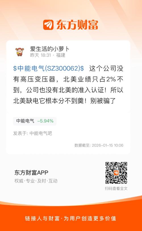 $中能电气(SZ300062)$ 这个公司没有高压变压器,北美业绩只占2%不到,公司也没有北美的准入认证!所以北美缺电它根本分不到羹!别被骗了
