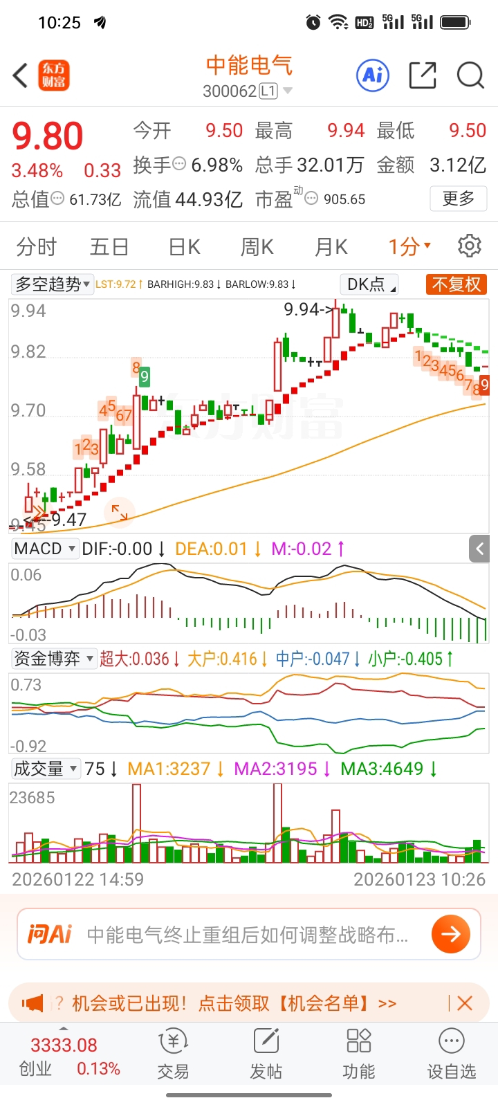 $中能电气(SZ300062)$ 炒股就是这样子,你会随着它的曲线跳动
