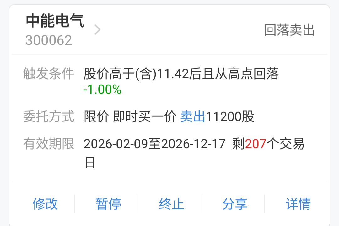 $中能电气(SZ300062)$ 没法了,被套了将近30个点,挂个条件单,不看你了。玩其他的去了,再见。