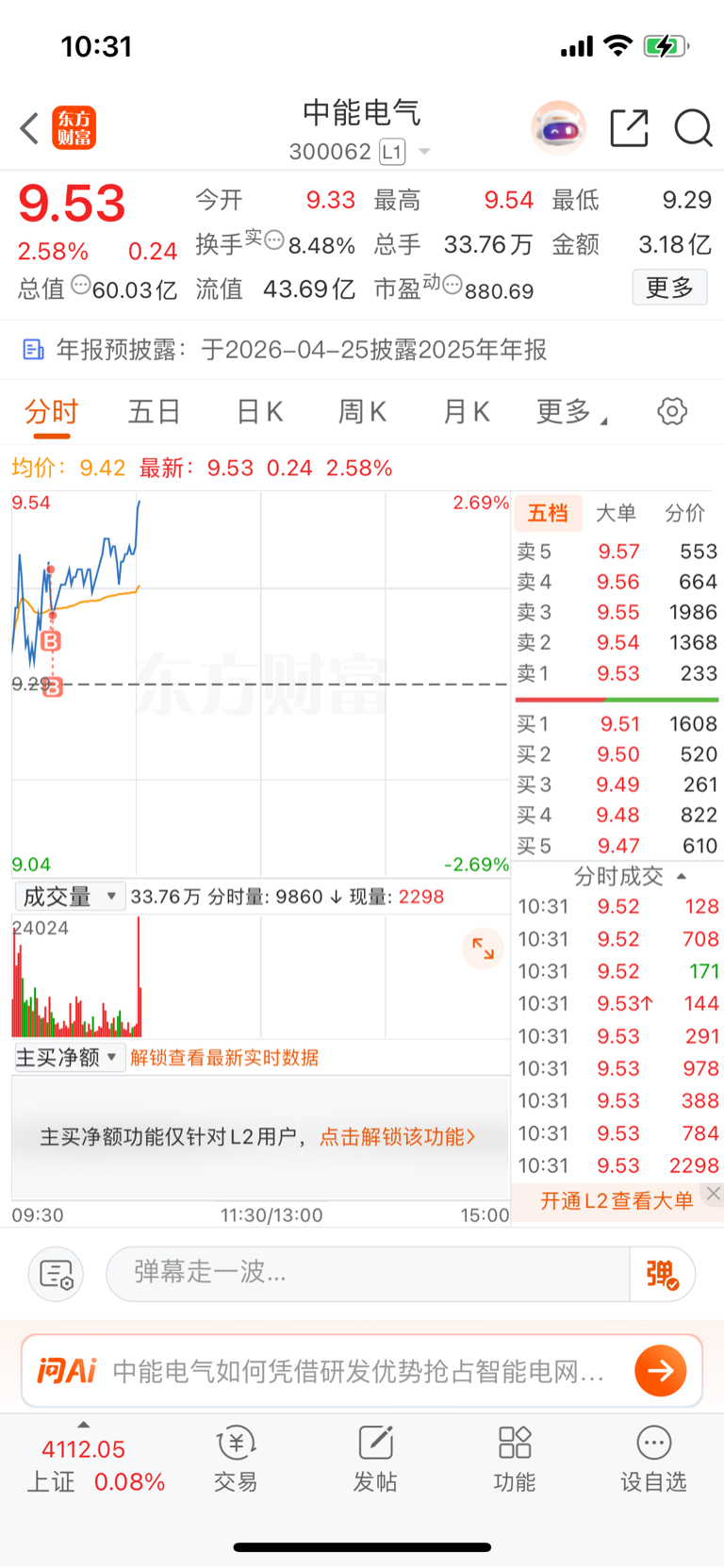 大家好,小胡来中能了!重新回到乐山,继续持有雷科!3月拥抱电力电网小胡重仓的股票
