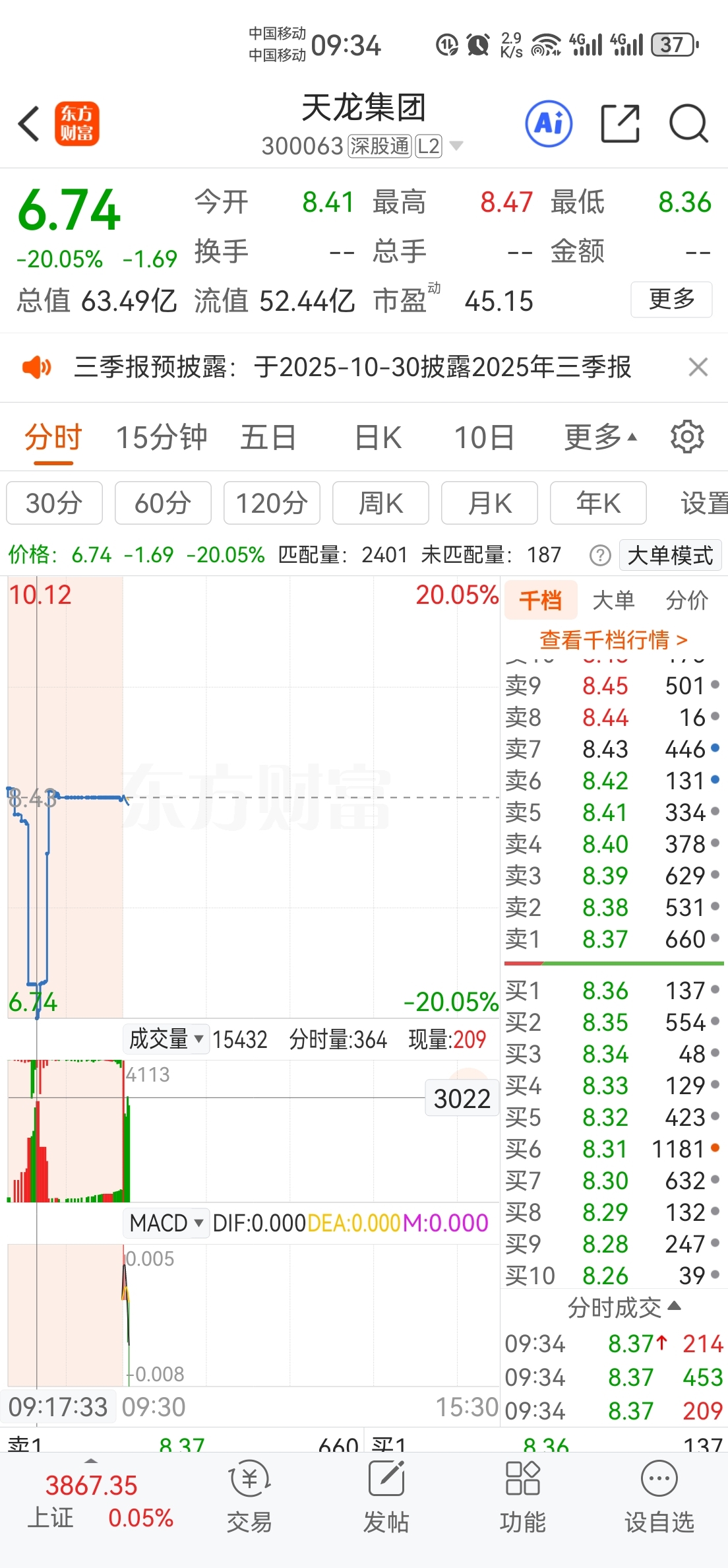 $天龙集团(SZ300063)$ 集合竞价的时候发生什么事情了。