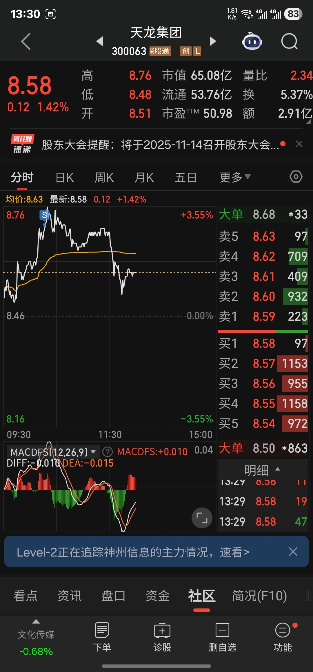 $天龙集团(SZ300063)$ 好险呐