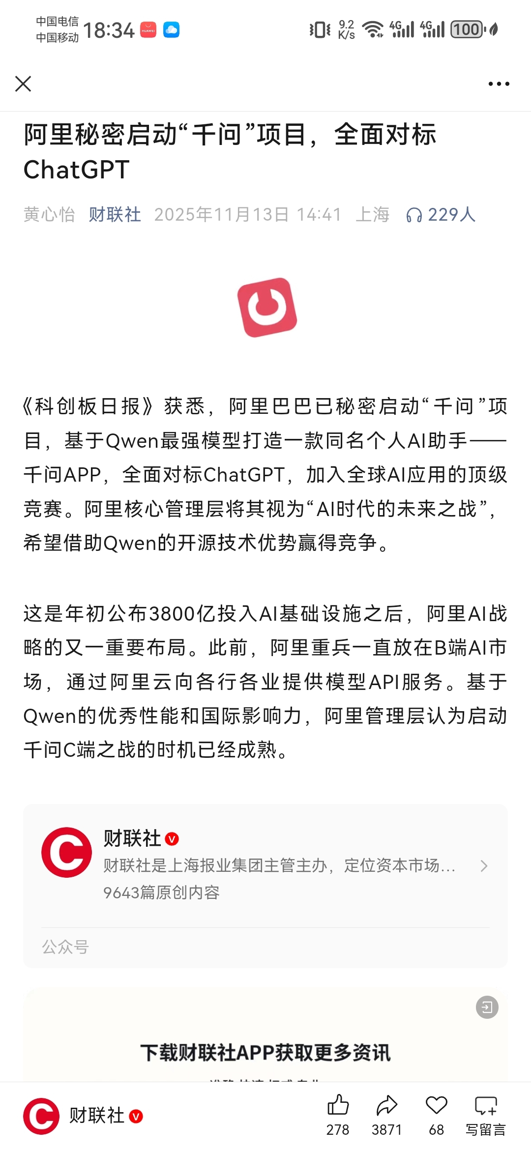 阿里秘密启动“千问”项目,全面对标ChatGPT。天龙有阿里概念,期待有表现啊。