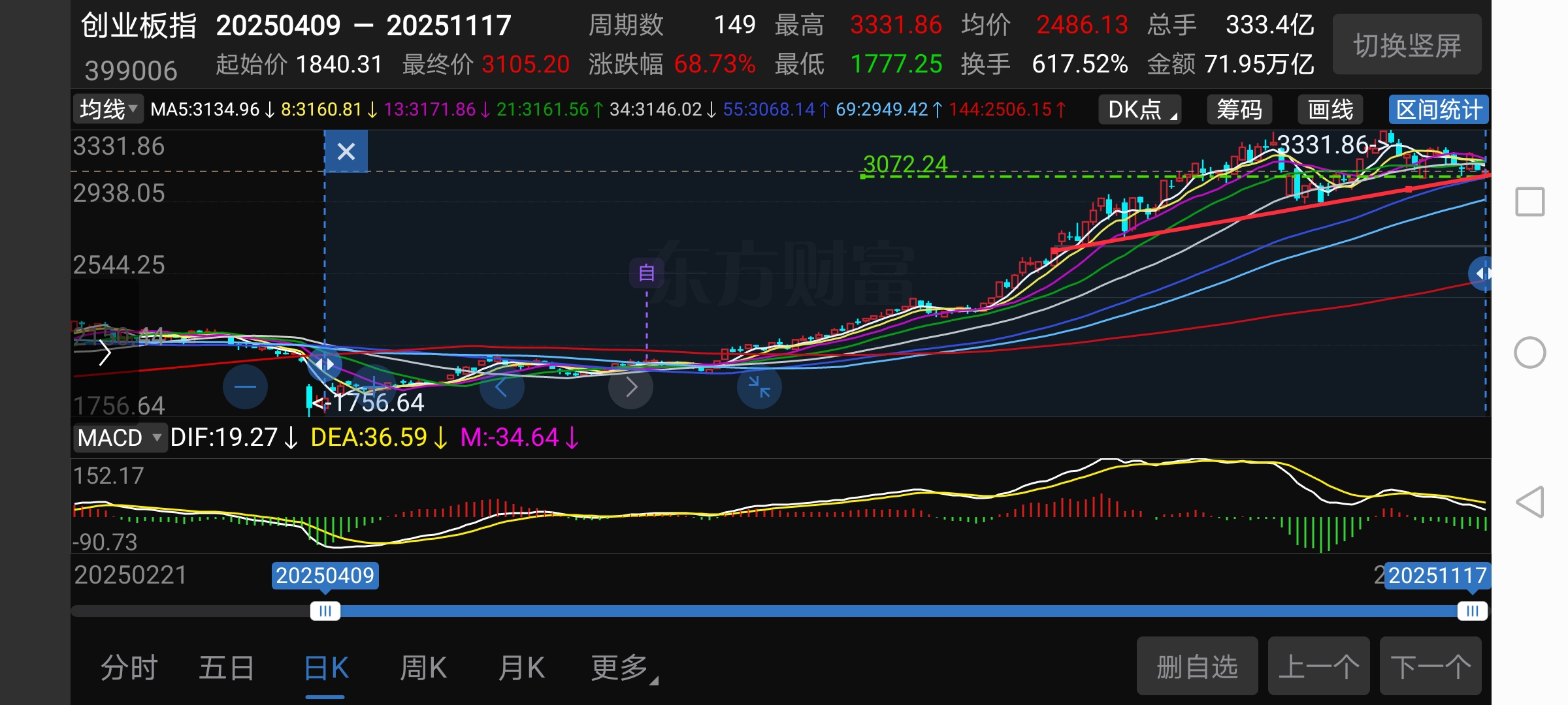 $天龙集团(SZ300063)$ 落后创业板指数多少?