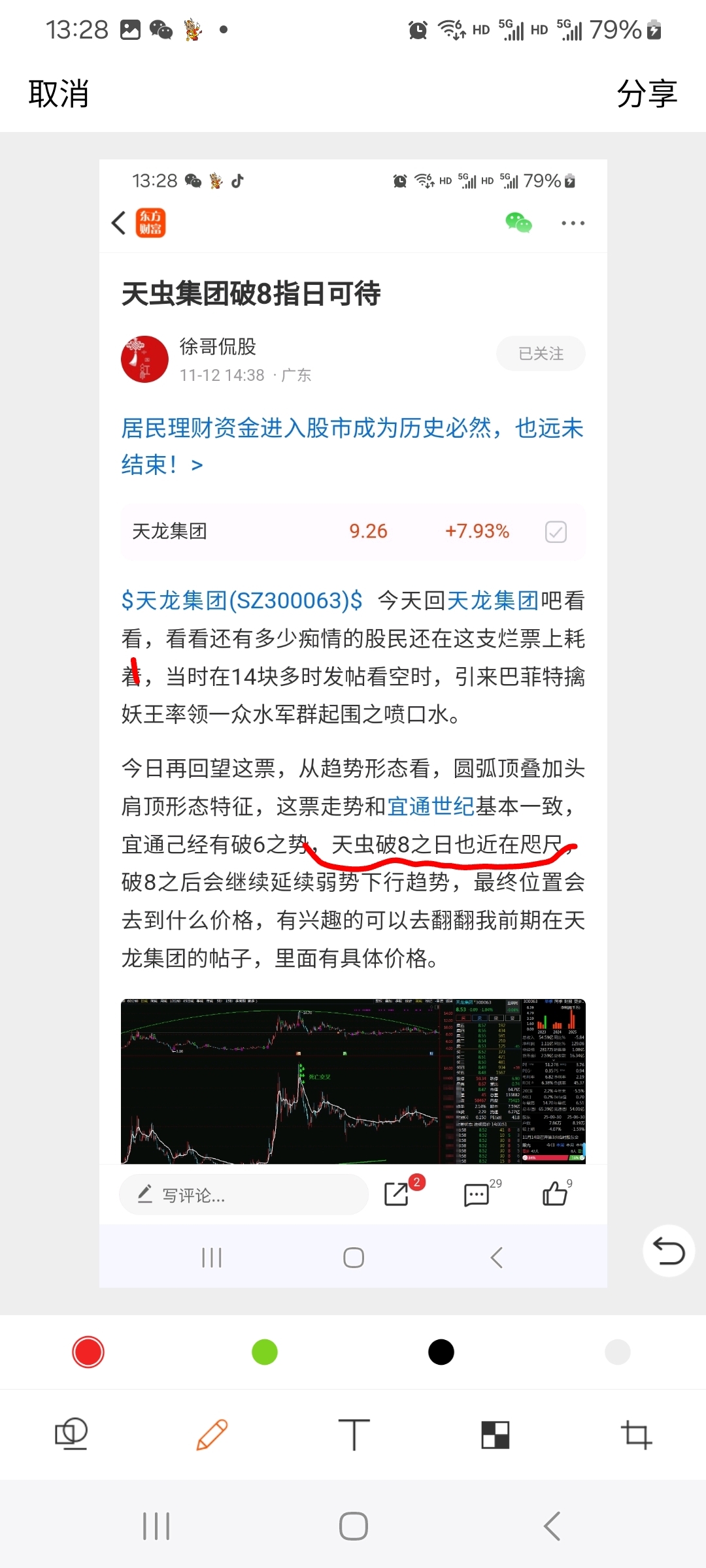 $天龙集团(SZ300063)$ 大家擦亮眼睛,不要相信这个15000粉丝的徐哥侃股这个骗子。什么时候不谈天龙集团?就在就在12号那天长篇大论发表了说天龙破八近在咫尺。吓得我昨天卖了,今天拉了一个大阳线。这个主力派来的奸细太坏了。