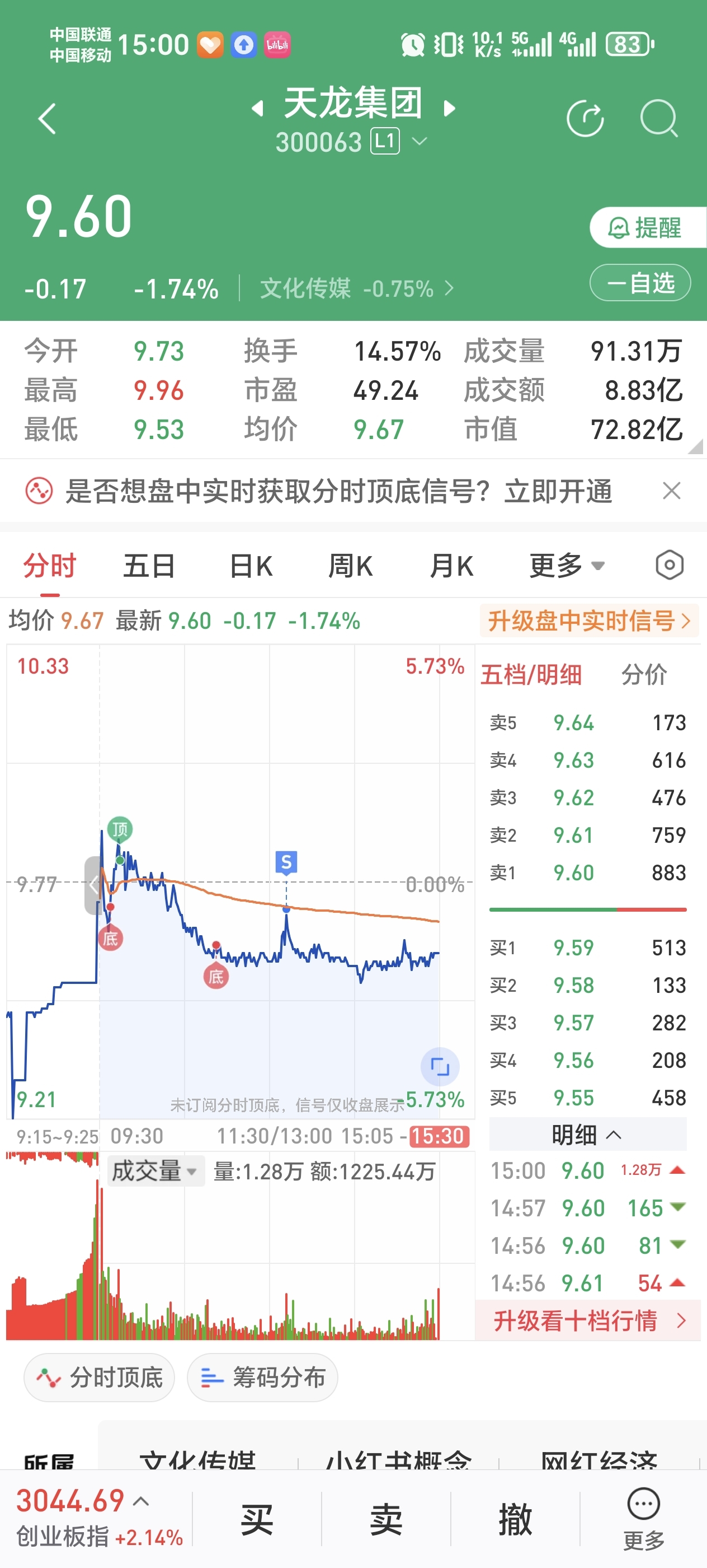 $天龙集团(SZ300063)$ 每次冲高都是跑路的机会。
