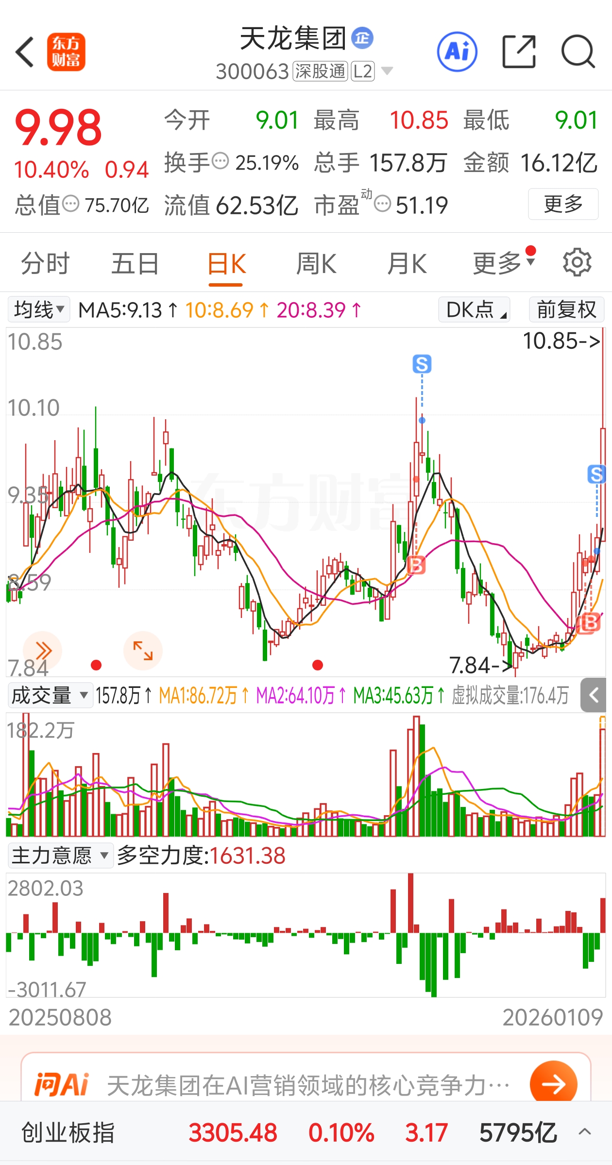 $天龙集团(SZ300063)$ 我错了龙哥,昨天刚卖