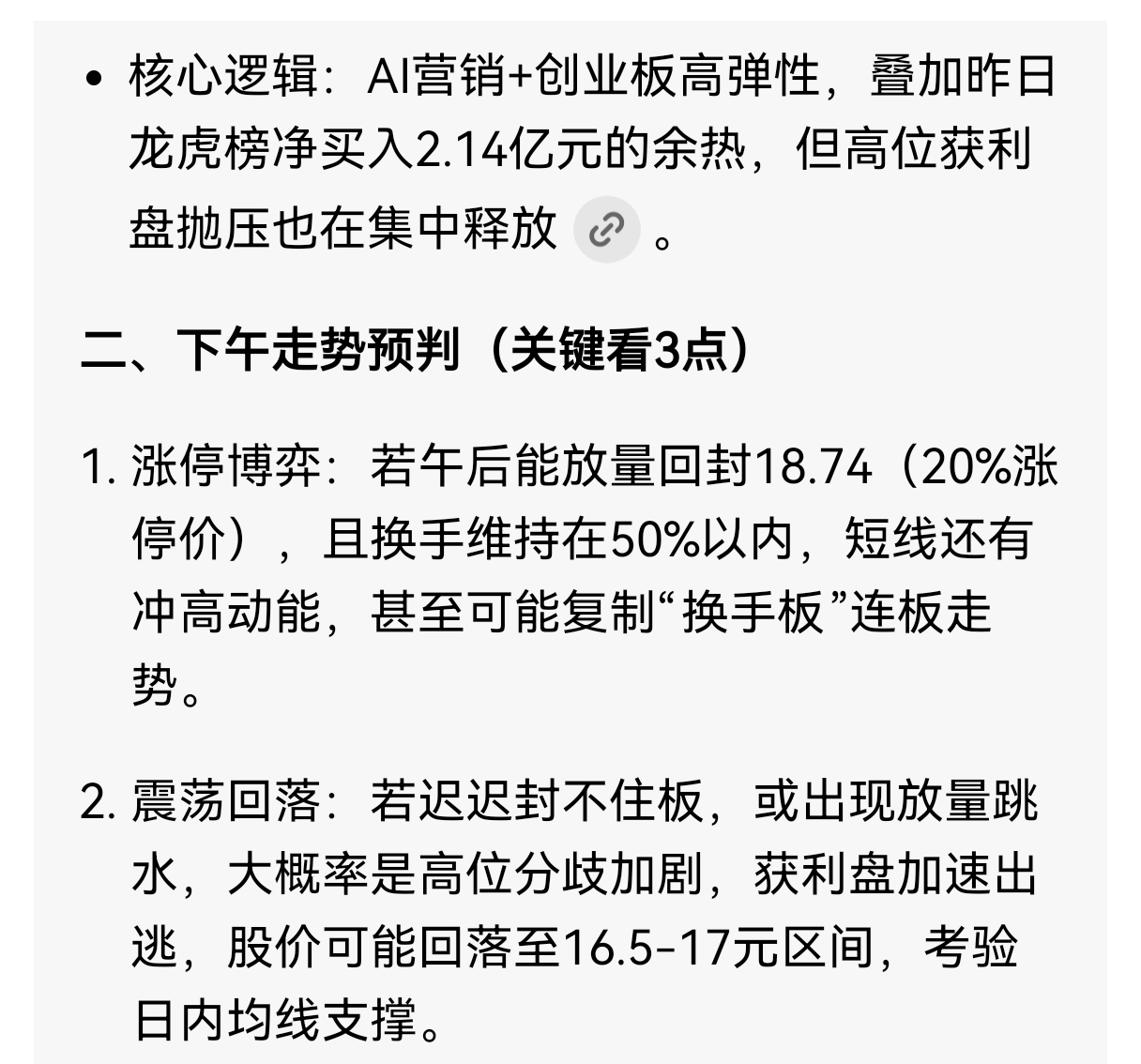 郑重声明:用户在财富号/股吧/博客等社区发表的所有信息(包括但不限于文字、视频、音频、数据及图表)仅代表个人观点,与本网站立场无关,不对您构成任何投资建议,据此操作风险自担。请勿相信代客理财、免费荐股和炒股培训等宣传内容,远离非法证券活动。请勿添加发言用户的手机号码、公众号、微博、微信及QQ等信息,谨防上当受骗!