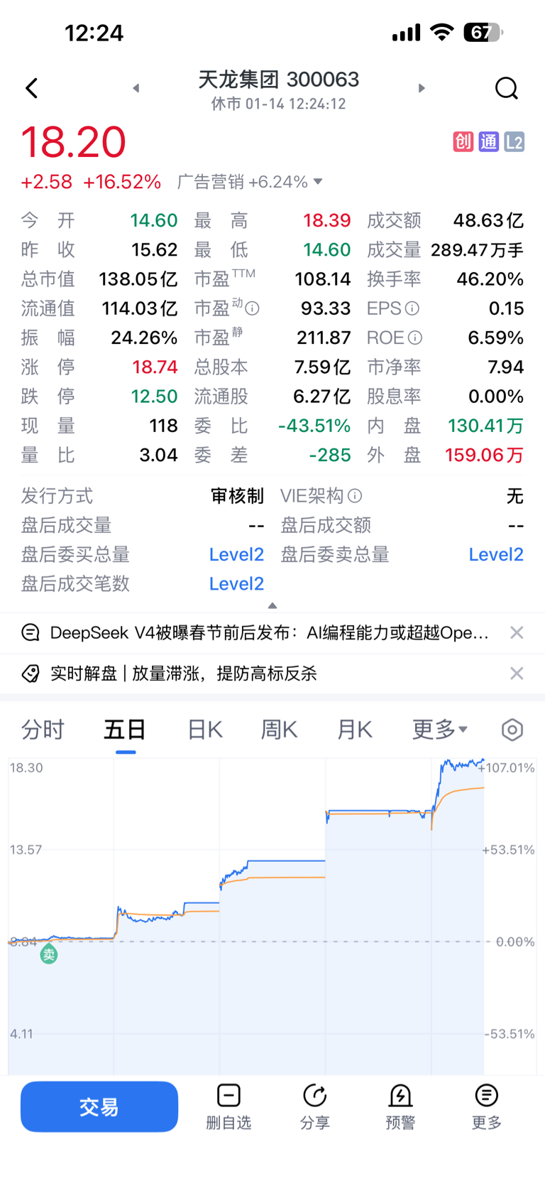 $天龙集团(SZ300063)$