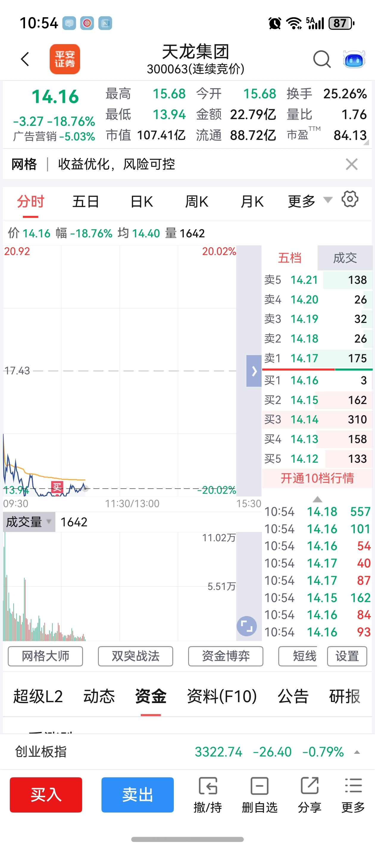 $天龙集团(SZ300063)$ 跌停买入,看明天高开反包