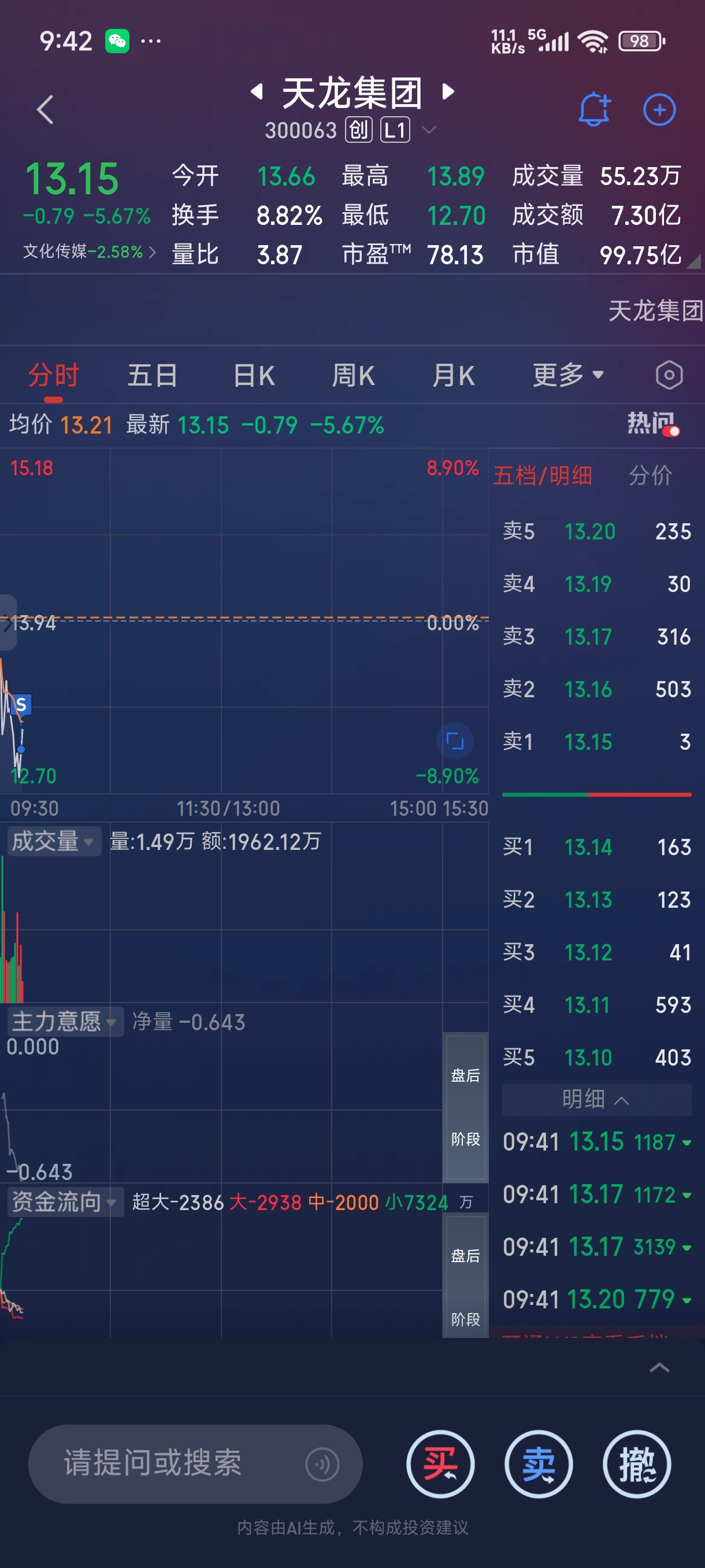 $天龙集团(SZ300063)$ 有比我惨的吗?卖到了最低点