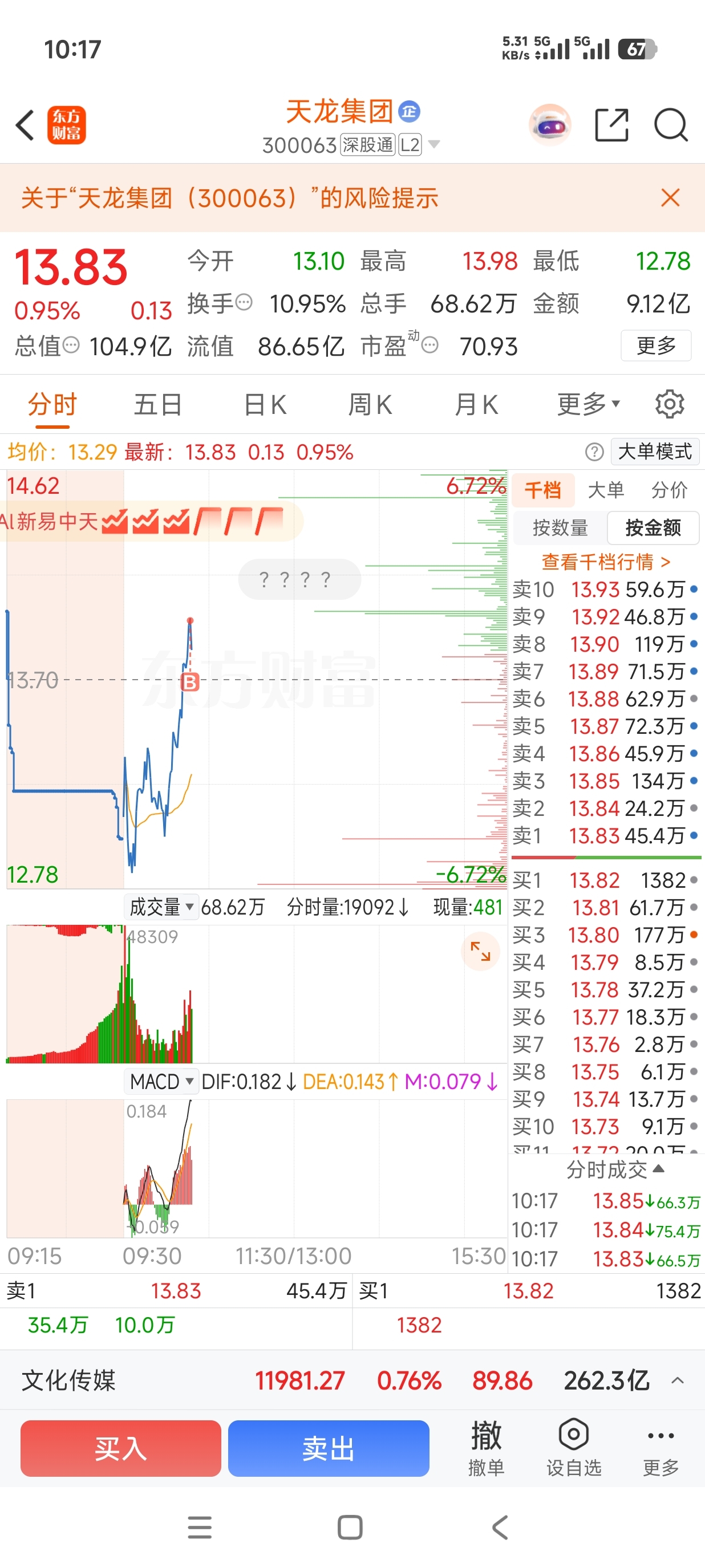 $天龙集团(SZ300063)$ 只要我出手,就涨不上去哈哈
