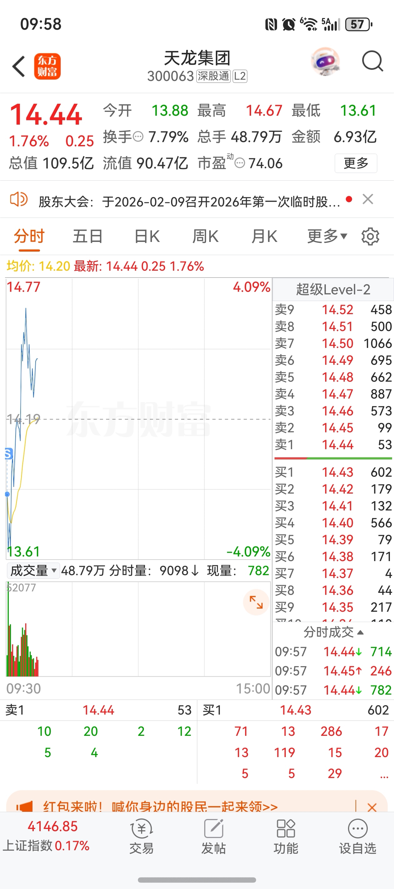 $天龙集团(SZ300063)$ 开盘卖了我了