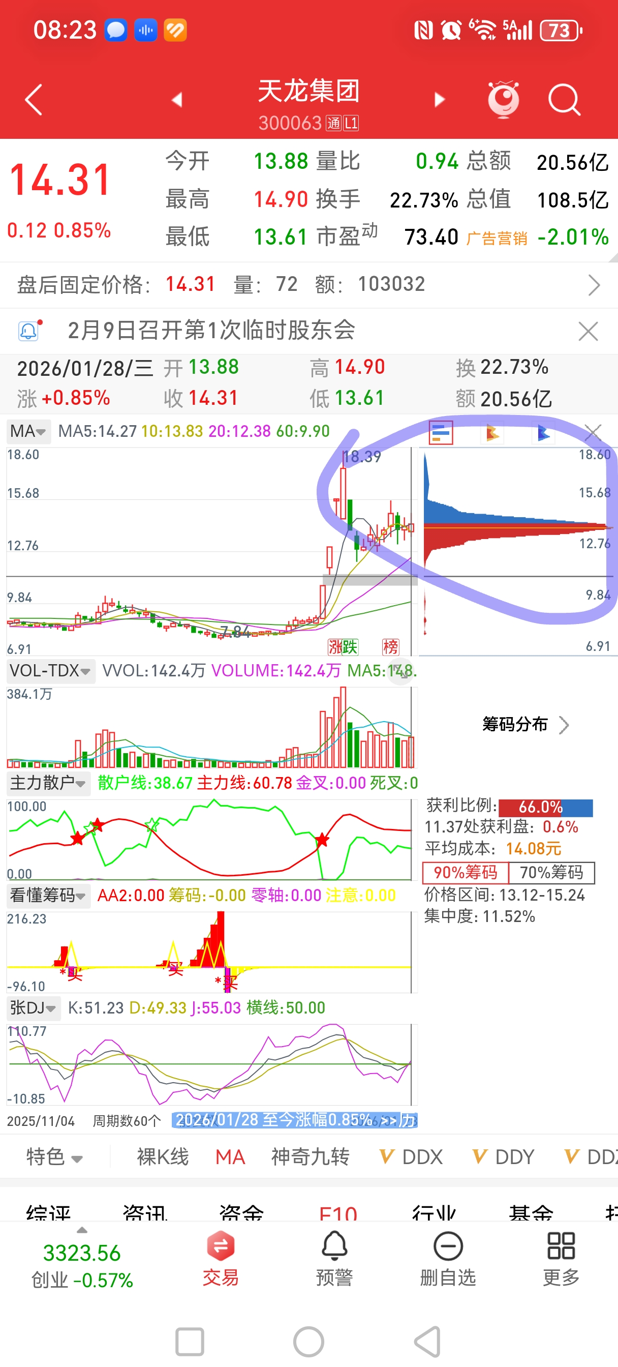 目前筹码集中在13-13.7区间,明天上20厘米。