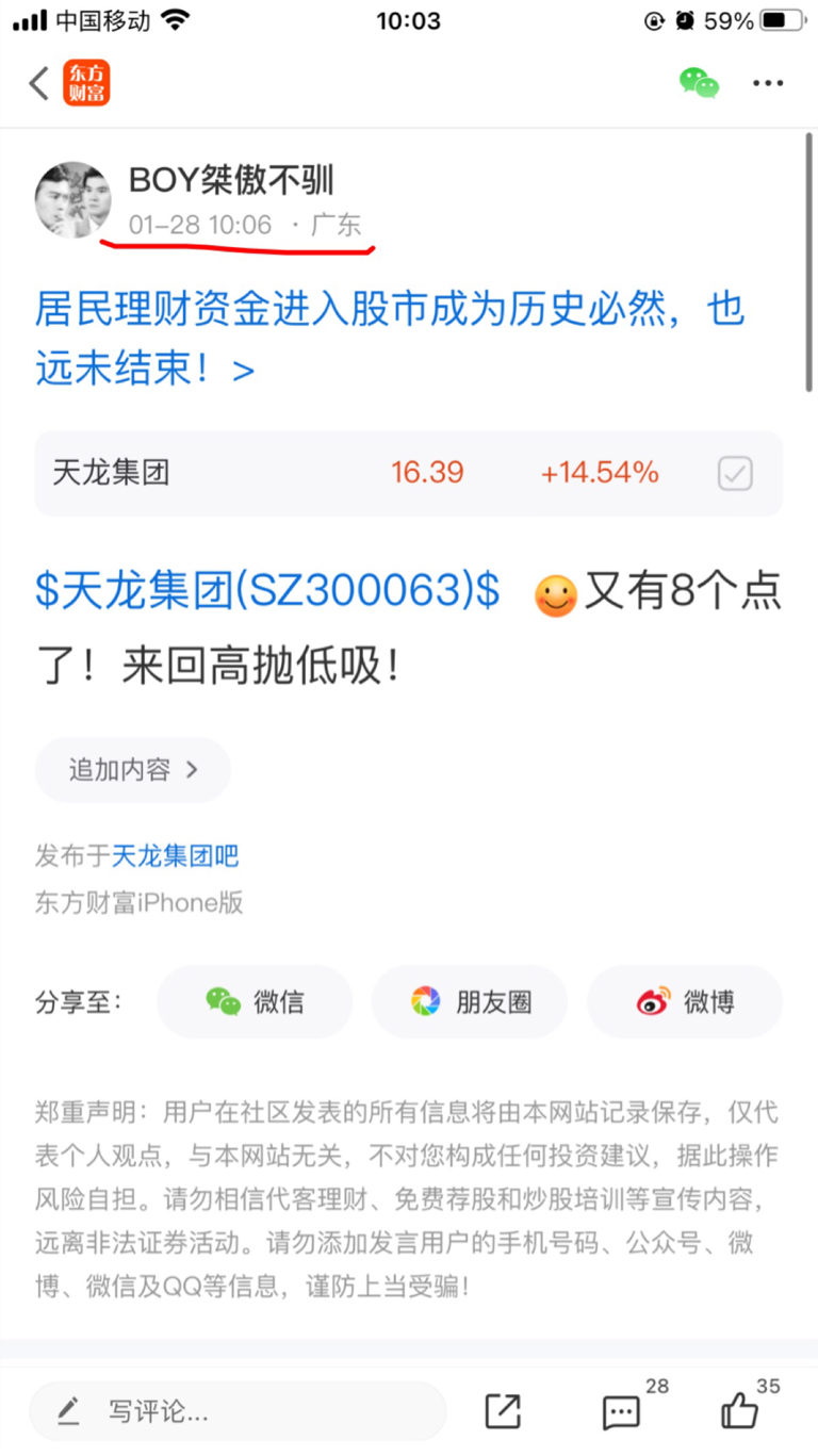 温馨提示: 1.根据《证券法》规定,禁止编造、传播虚假信息或者误导性信息,扰乱证券市场;2.用户在本社区发表的所有资料、言论等仅代表个人观点,与本网站立场无关,不对您构成任何投资建议。用户应基于自己的独立判断,自行决定证券投资并承担相应风险。《东方财富社区管理规定》