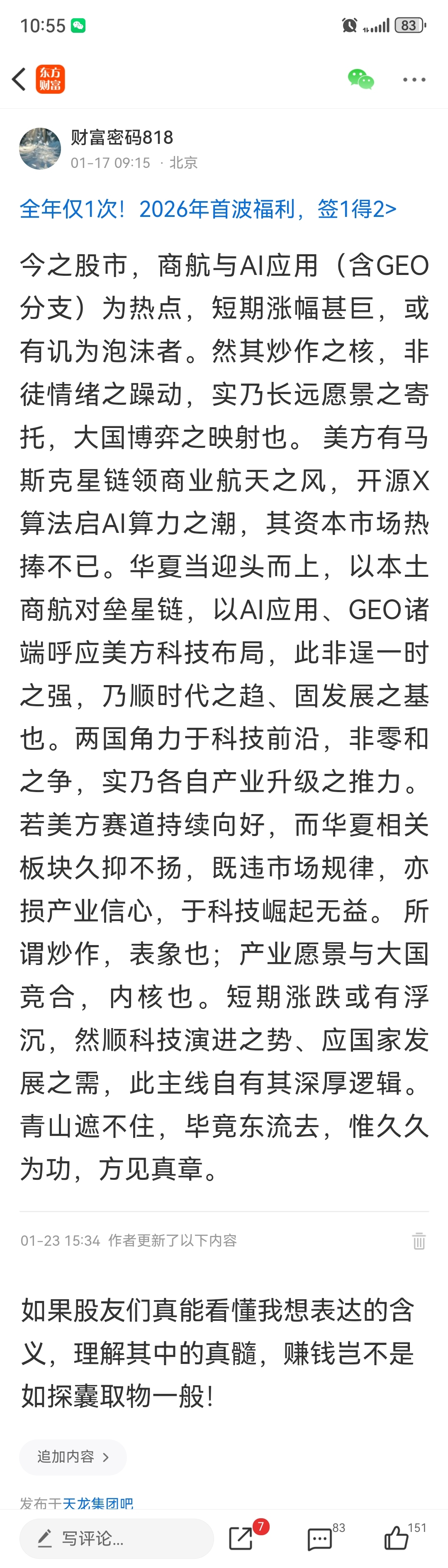 温馨提示: 1.根据《证券法》规定,禁止编造、传播虚假信息或者误导性信息,扰乱证券市场;2.用户在本社区发表的所有资料、言论等仅代表个人观点,与本网站立场无关,不对您构成任何投资建议。用户应基于自己的独立判断,自行决定证券投资并承担相应风险。《东方财富社区管理规定》