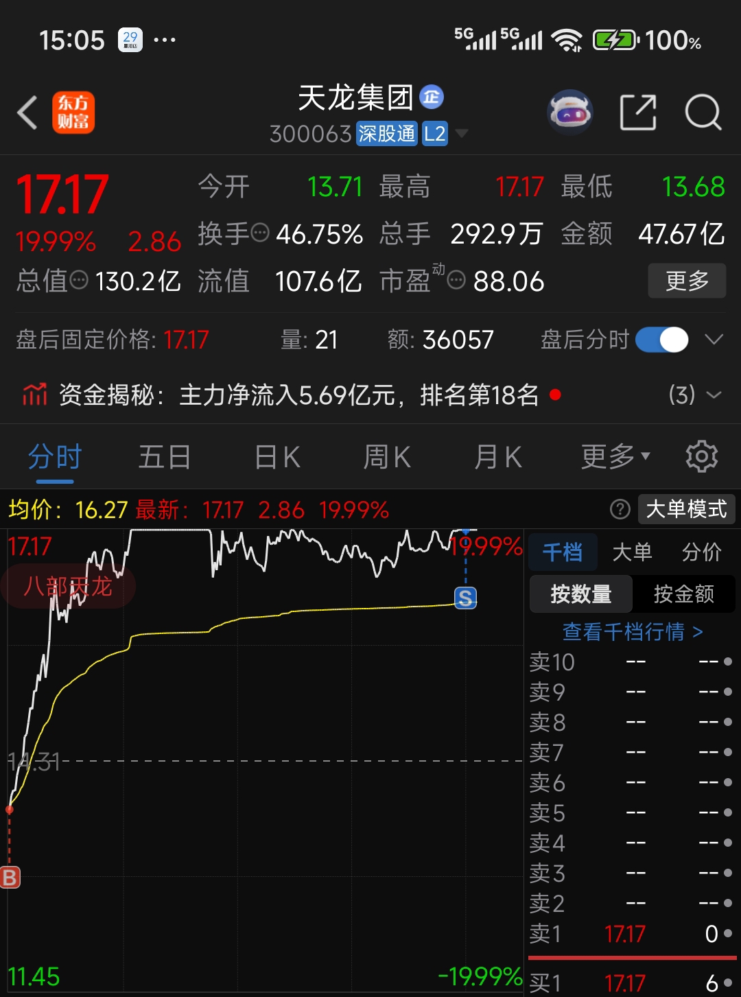 $天龙集团(SZ300063)$ 昨天卖了一半,今天开盘买回,尾盘卖出