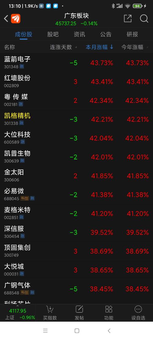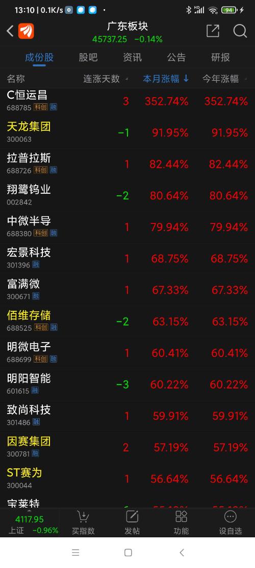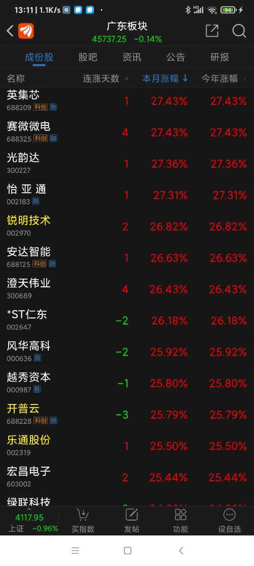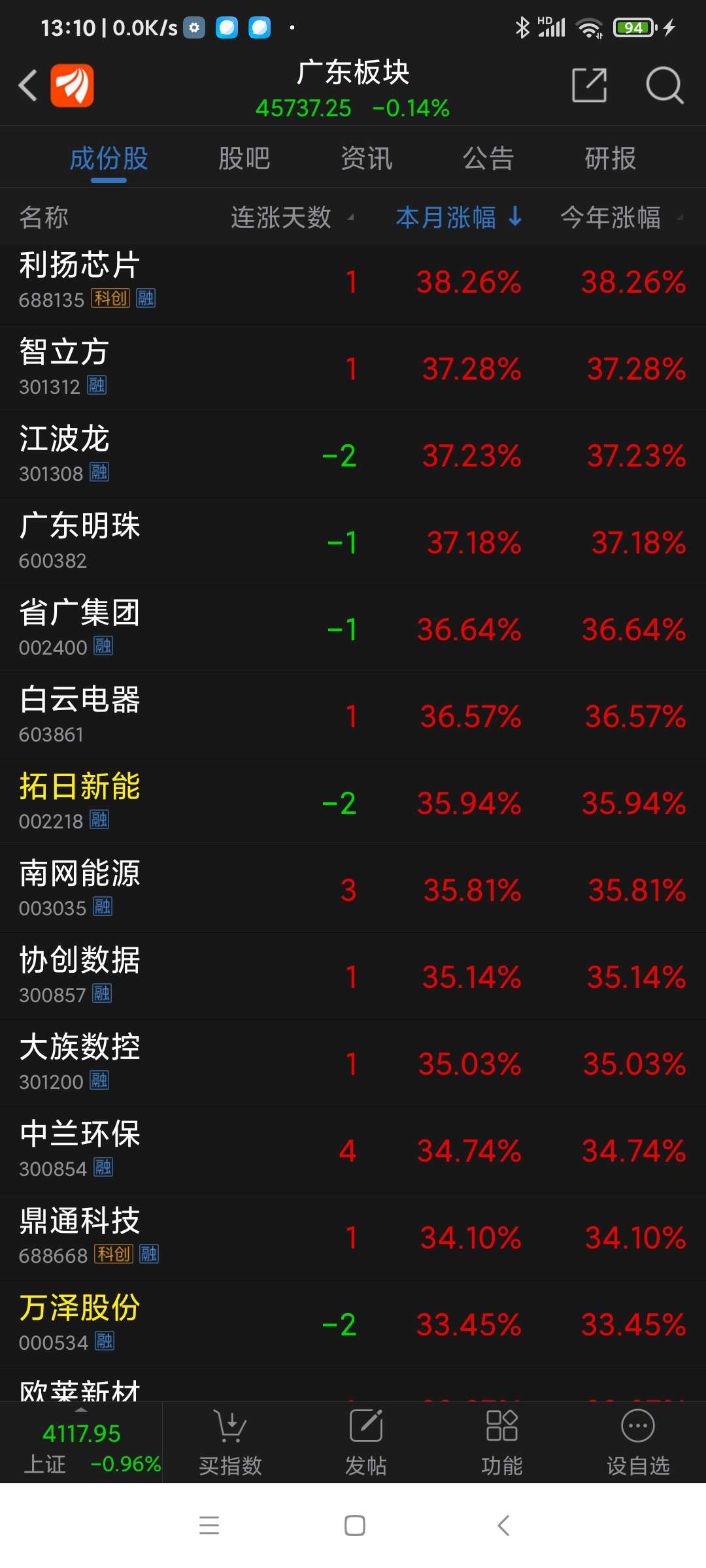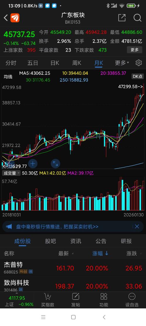 广东板块26年元月涨幅达7.35%,天龙集团名列第一名。