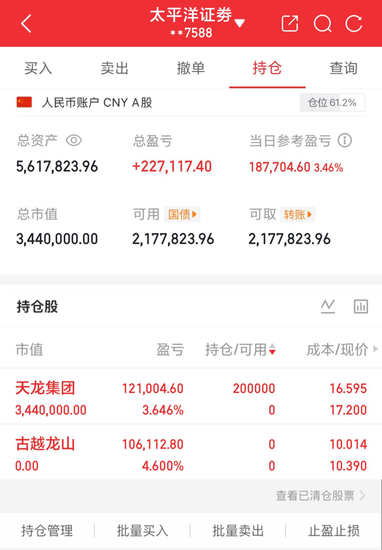持有: $天龙集团 sz300063$