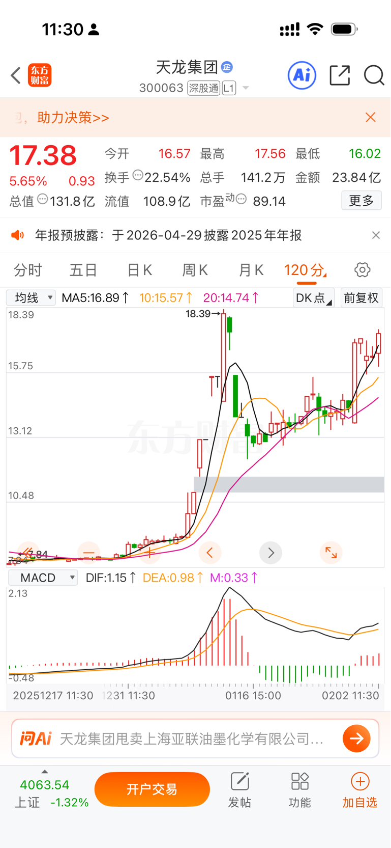$天龙集团(SZ300063)$ 上午这涨跟腾讯元宝有合作,今天不涨停,明天也涨停,恭喜大家发大财,此股本周站上20-22元以上