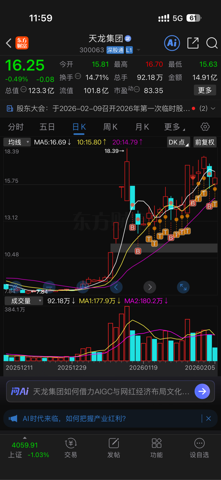 $天龙集团(SZ300063)$ 静待花开