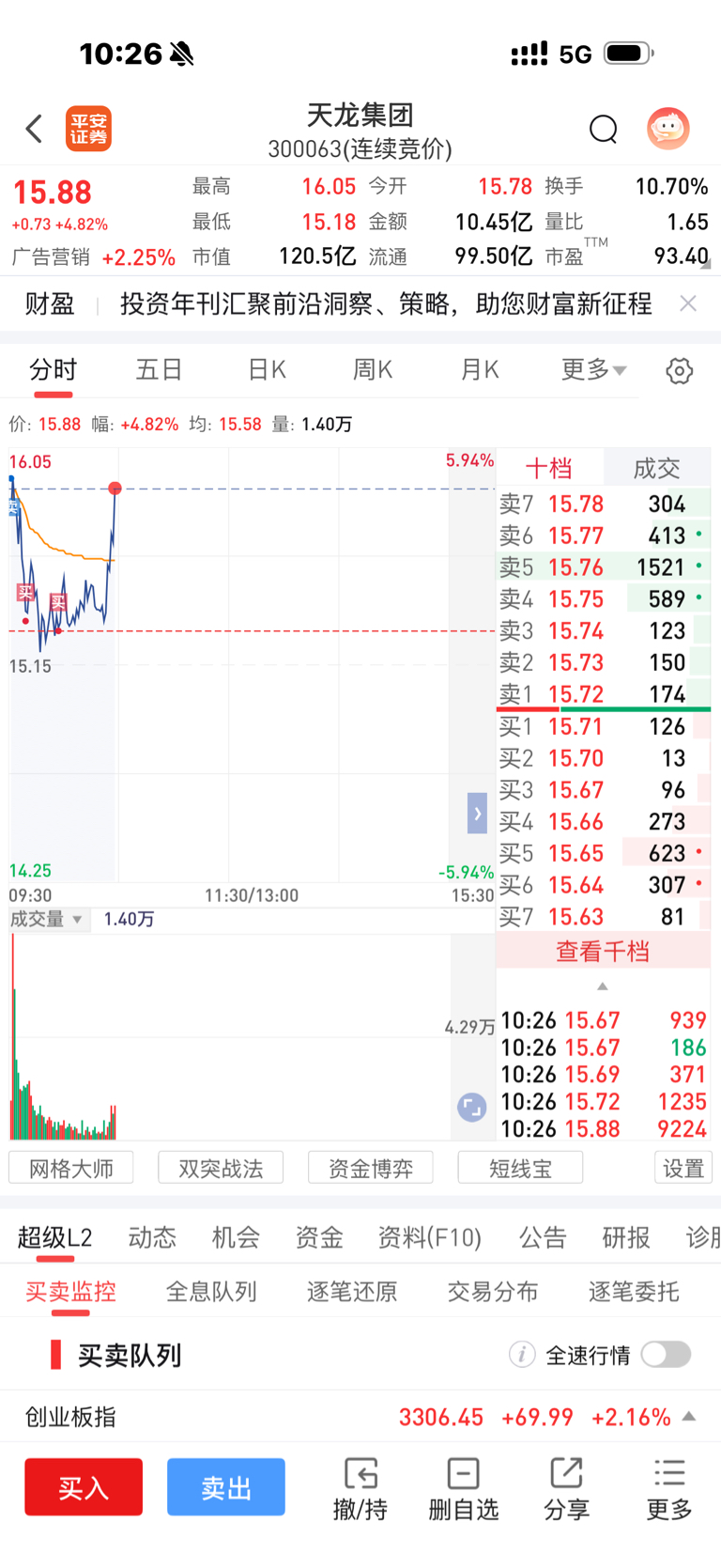 $天龙集团(SZ300063)$ 今天这一拉,多诱人,明天突破18.4概率又回来了