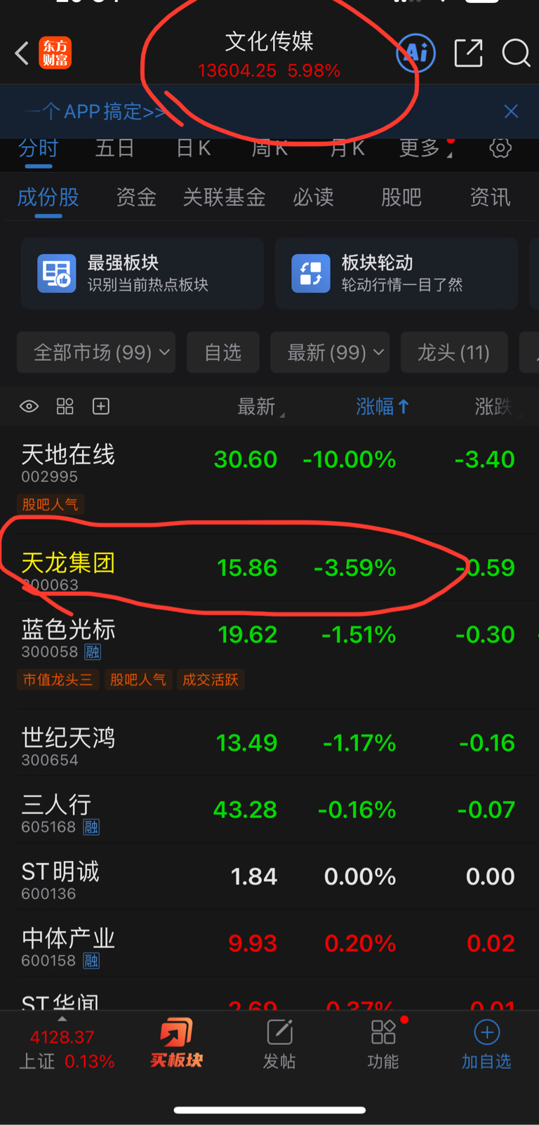 $天龙集团(SZ300063)$ 今天在风口,为什么不涨啊?!