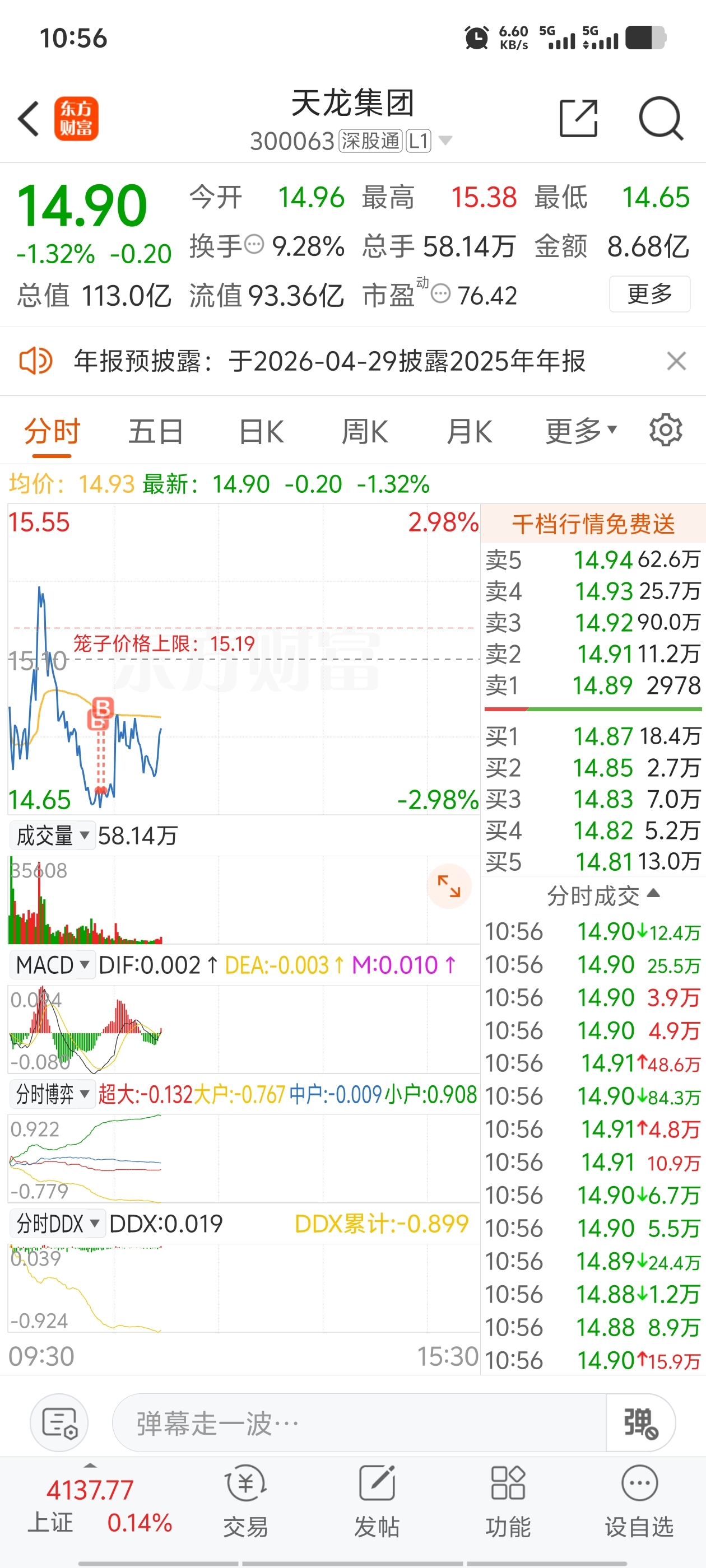 $天龙集团(SZ300063)$ 对不对,不知道,这几天每天都加一点,跌了加,再跌再加。利润还有,回吐不少
