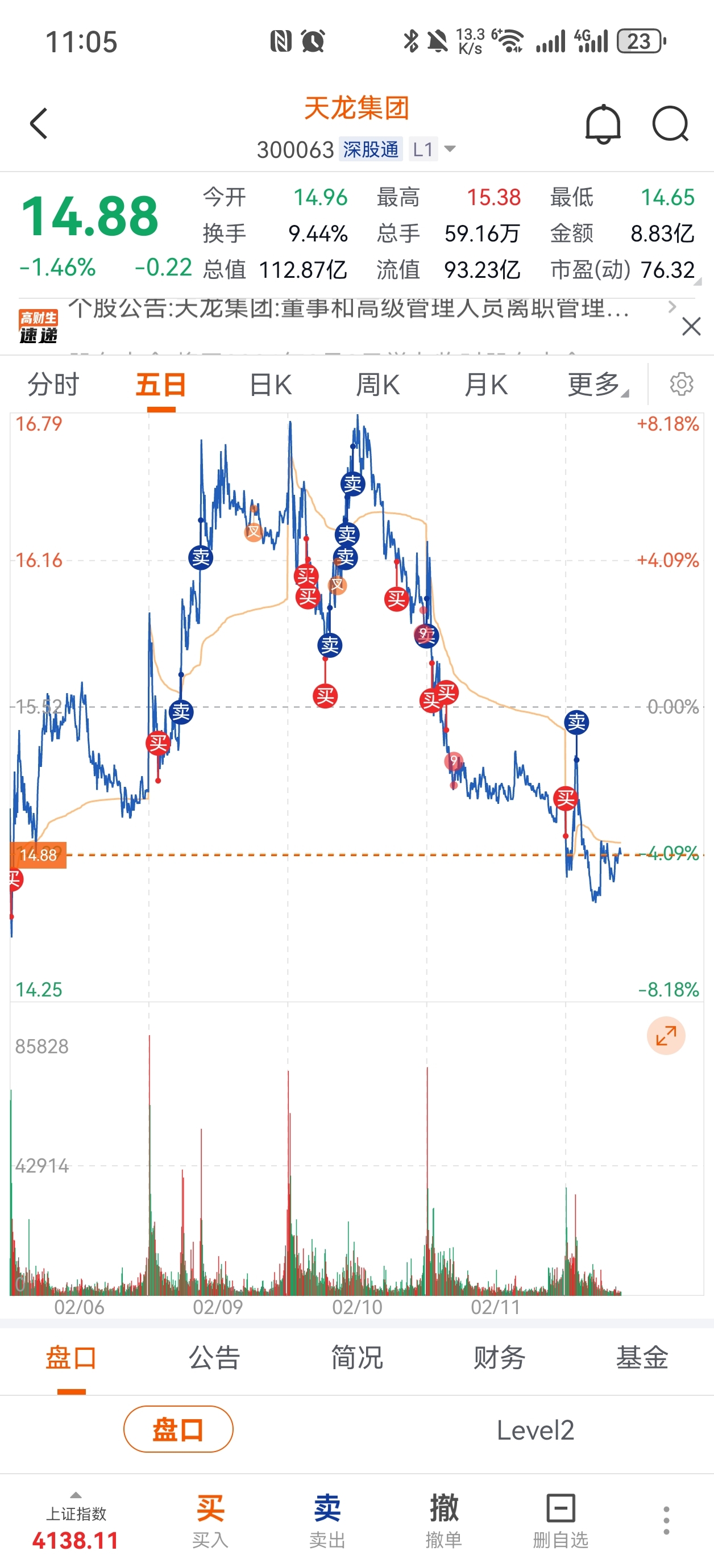 $天龙集团(SZ300063)$ 这操作有瑕疵吗?还是挣不了,股性太差了