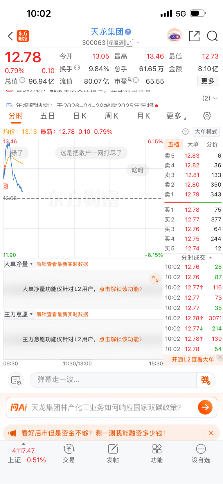 $天龙集团(SZ300063)$ 今天着上了一课!真狠!