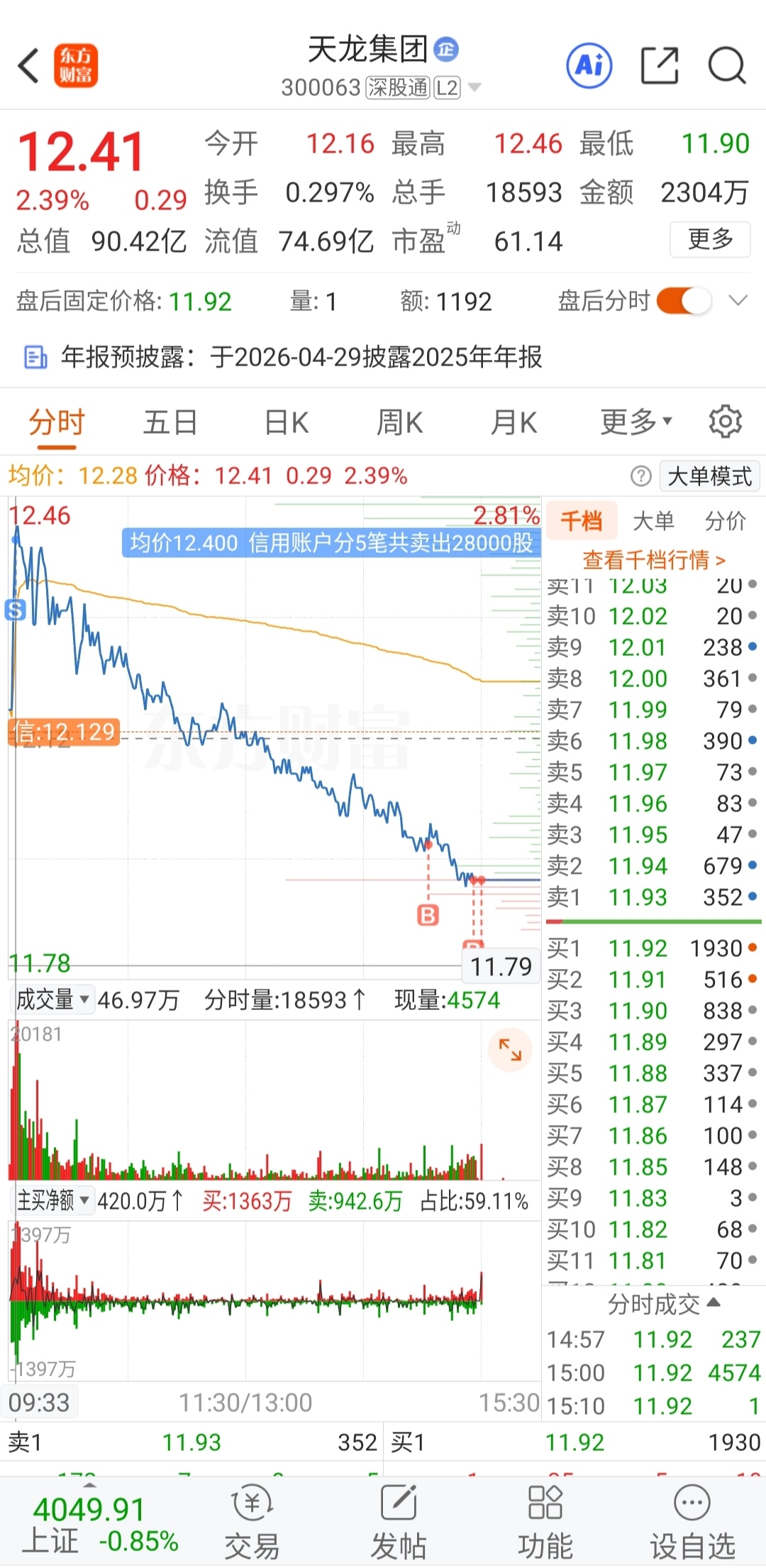 $天龙集团(SZ300063)$ 尾盘陆续买了一部分回来,来回折腾吧,希望来个冲天大阳线