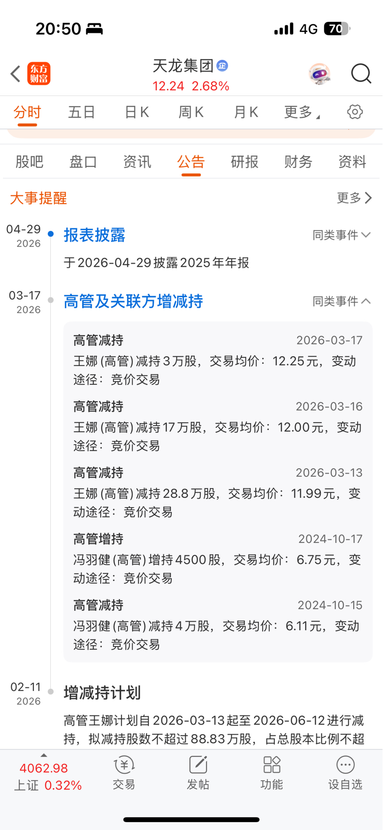 $天龙集团(SZ300063)$ 这个星期就减持完了