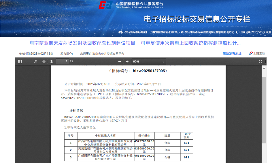 海兰信全资子公司“海南欧特海洋科技有限公司"联合其他2公司中标海南商业航天发射场